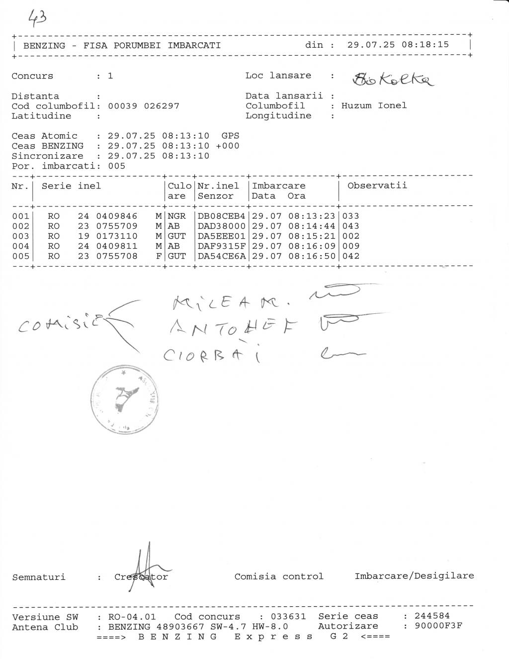 | 25 | Frone Costica | BR84 | BEN | Braila | [IMB P0] | |