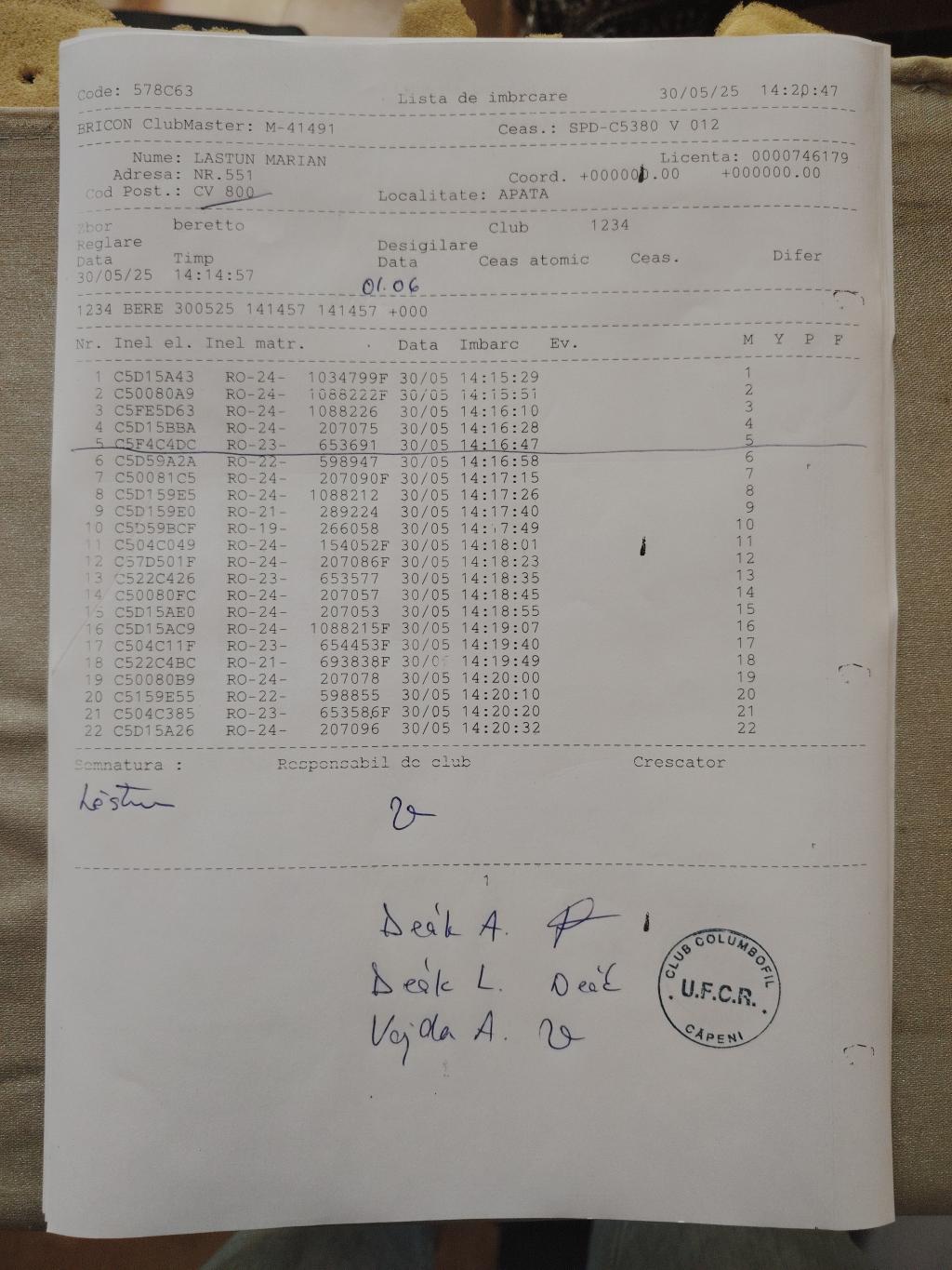 RECLEMARE: [Imbarcare Stroe Nicolae] [Imbarcare Erdelyi] SIGILARE: [Sigilare masina CV 01 FBV in centrul Ozun se deplaseaza la Sfantu Gheorghe] [Desigilare Sosire ma?ina CV01FBV de la centrul Ozun ] [Sigilare Cv01FBV-Valea Crisului cu destinatia Capeni ] [Sigilare ma?ina CV01 FBV centru Sfântu Gheorghe ] [Desigilare masina CV 01FBV-sigilat la Centrul de imb. Sf. Gheorghe] [Sigilare masina pentru etapa 1 demifond Berettyoujfalu pleac? la locul de lansare ] [Desigilare masina sosit de la centrul Valea Crisului ] |
