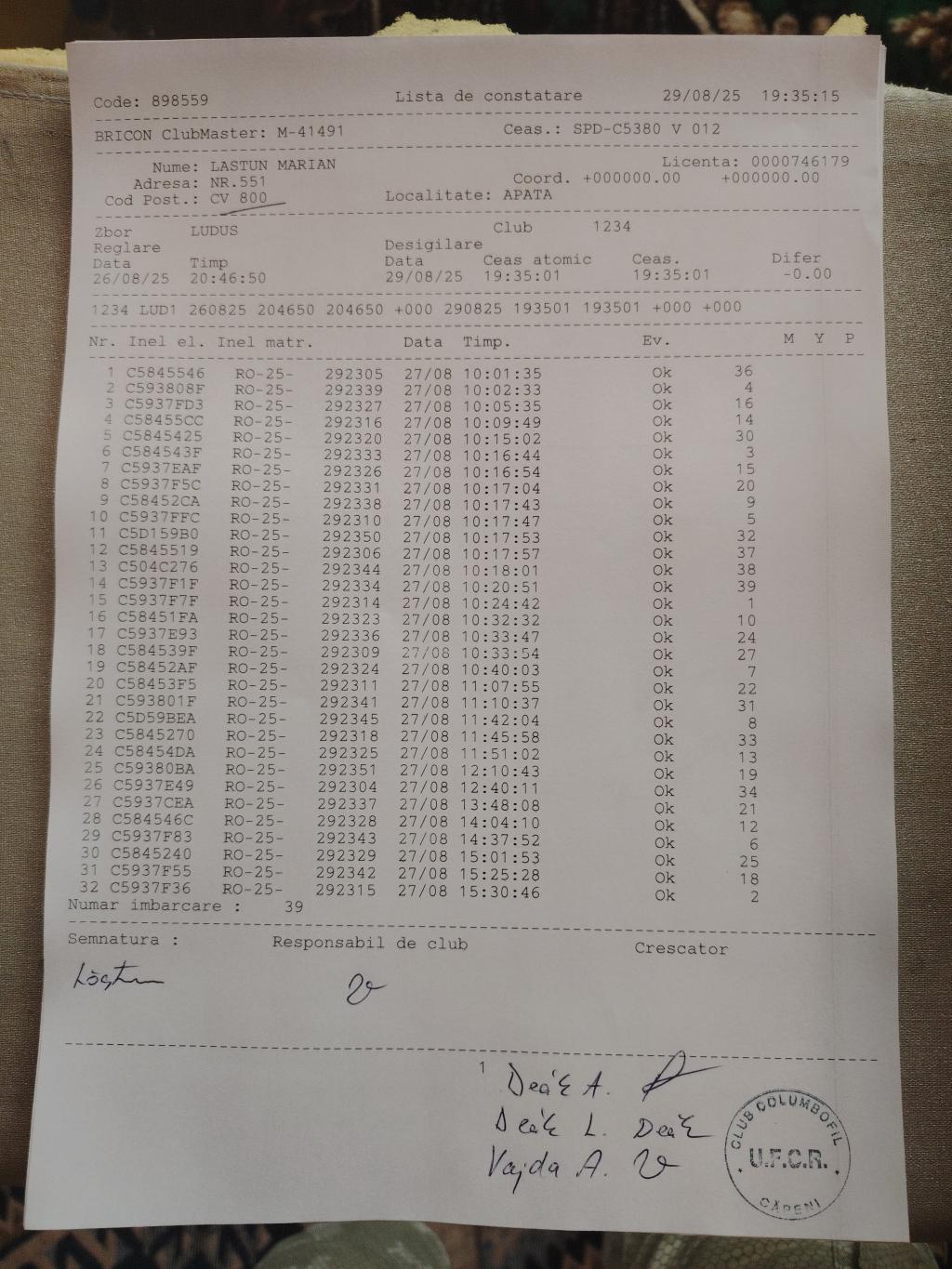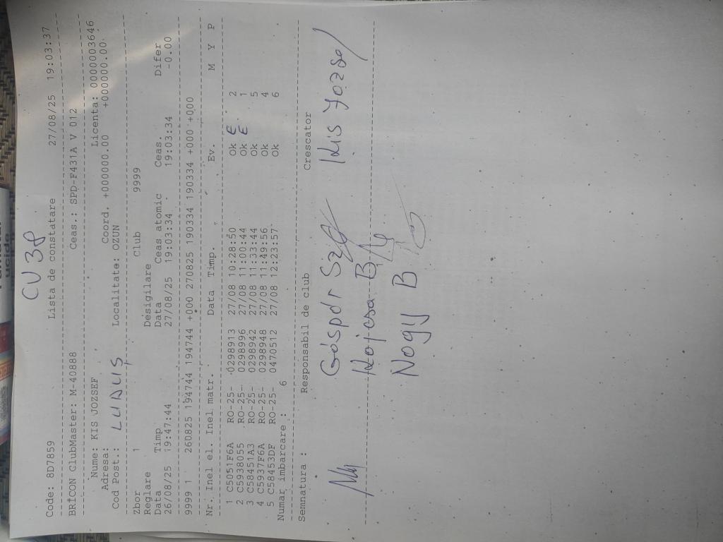 SIGILARE: [Sigilare masina CV 06 HTJ in centrul Ozun se deplaseaza la Sfantu Gheorghe] [Sigilare Valea Crisului,masina CV 01 FBV-,etapa Ludus.destinatia Capeni ] [Desigilare Sosire ma?ina CV06HTJ din centrul Ozun ] [Sigilare ma?ina CV06HTJ la centru Sfântu Gheorghe cu destina?ia Ludus ] [Desigilare masina CV01 FBV Sosit de la centrul Valea Crisului ] [Sigilare masina CV01 FBV pentru etapa Ludus masina se deplaseaz? la locul de lansare ] |
