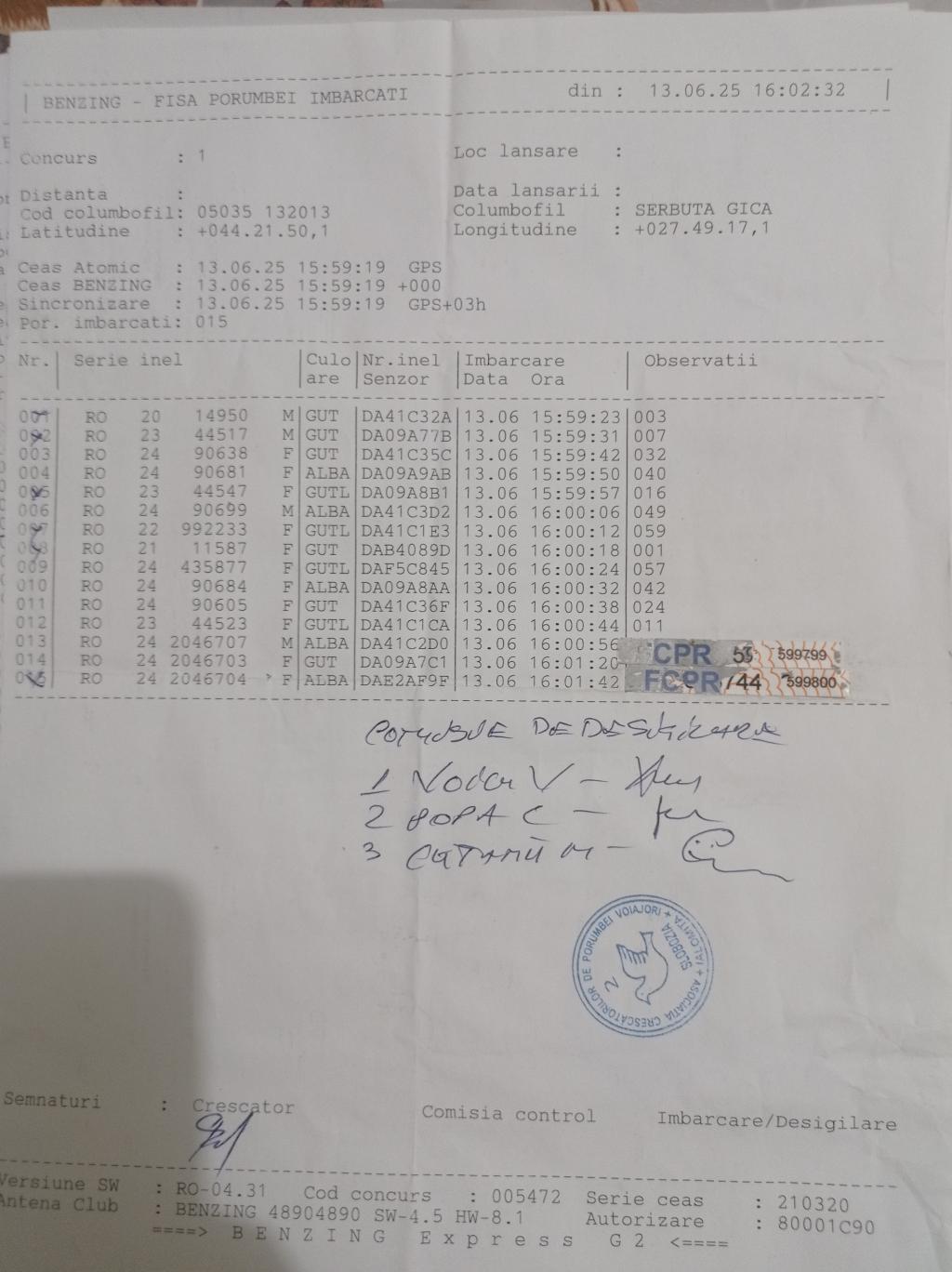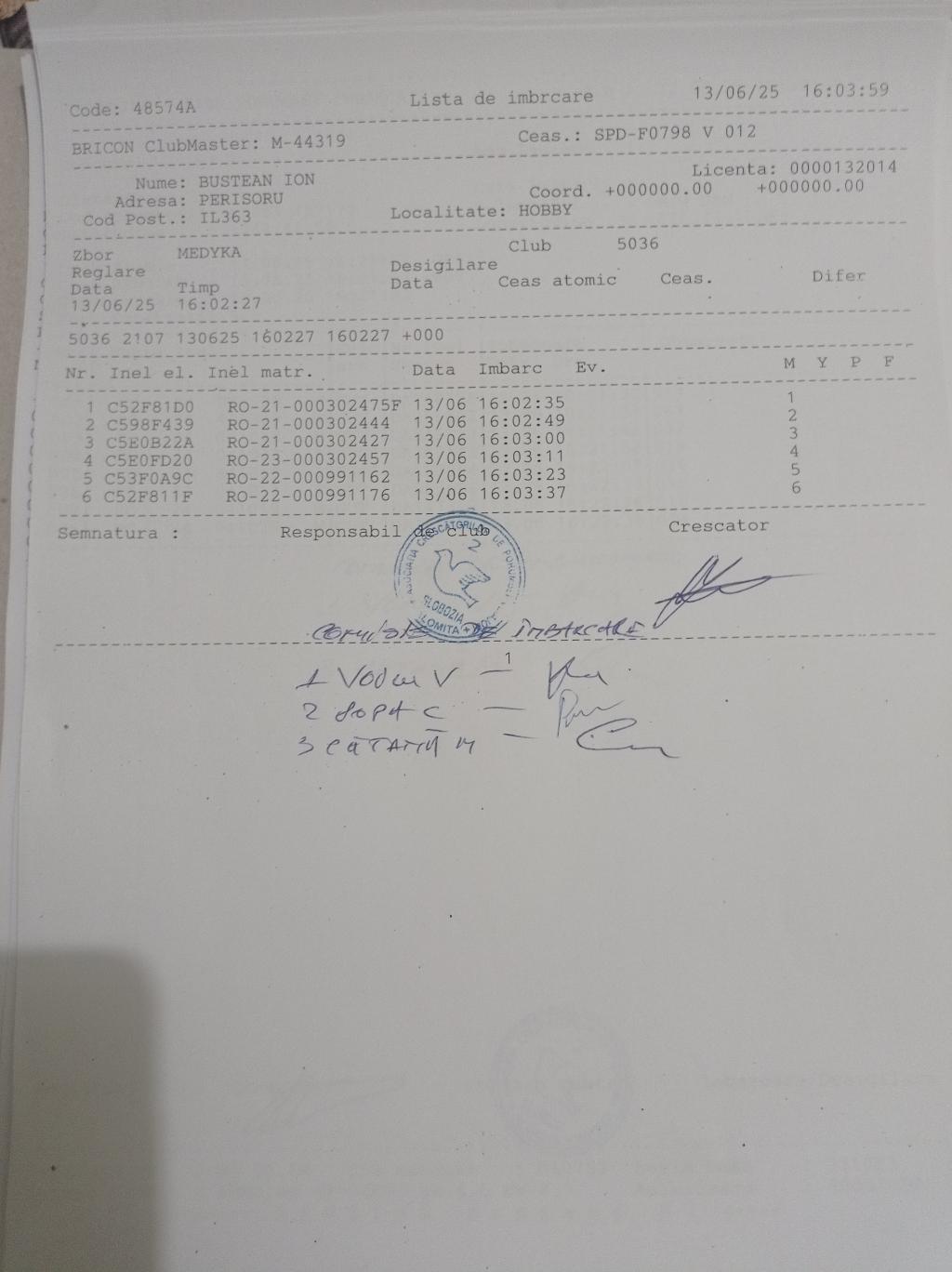 | 105 | Crescatoria Bursuc Laurentiu | CT1010 | BEN | Medgidia | [IMB P0] | |