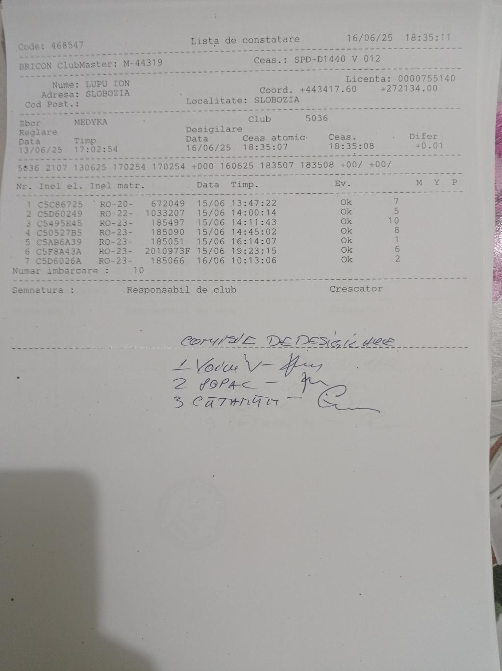 | 71 | Dinca Marian | CT484 | TOP | Constanta 2 |
