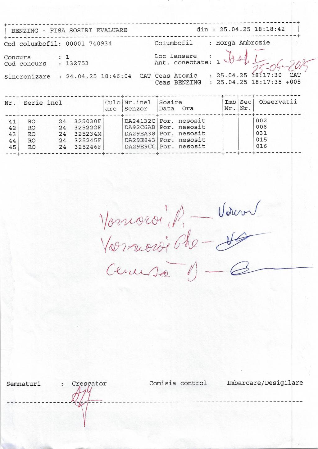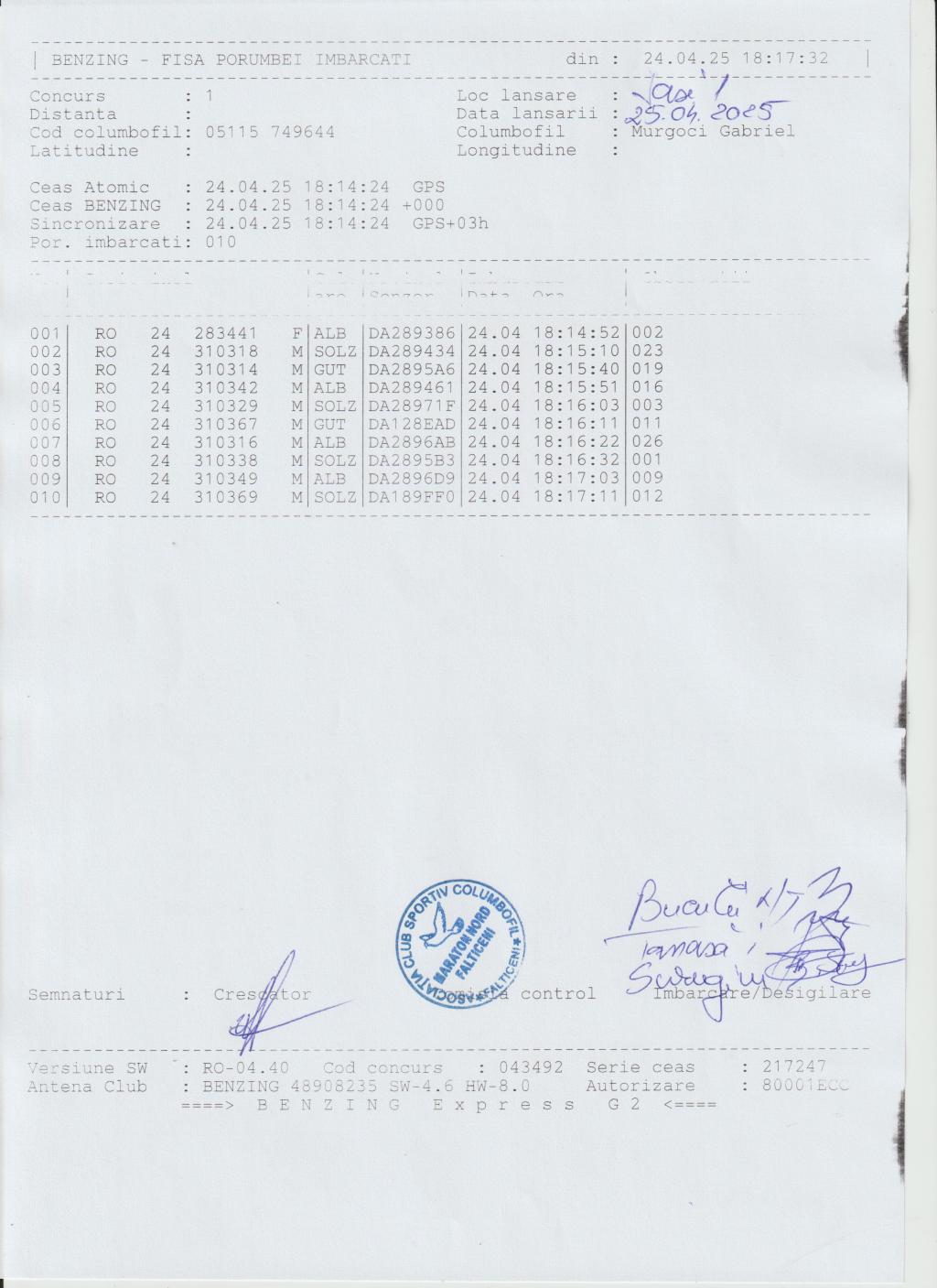 44 | Buga Gheorghe | SV1364 | BEN | Fair Play Bucovina | [IMB P0] [IMB P1] | [DES P0] [DES P1] |