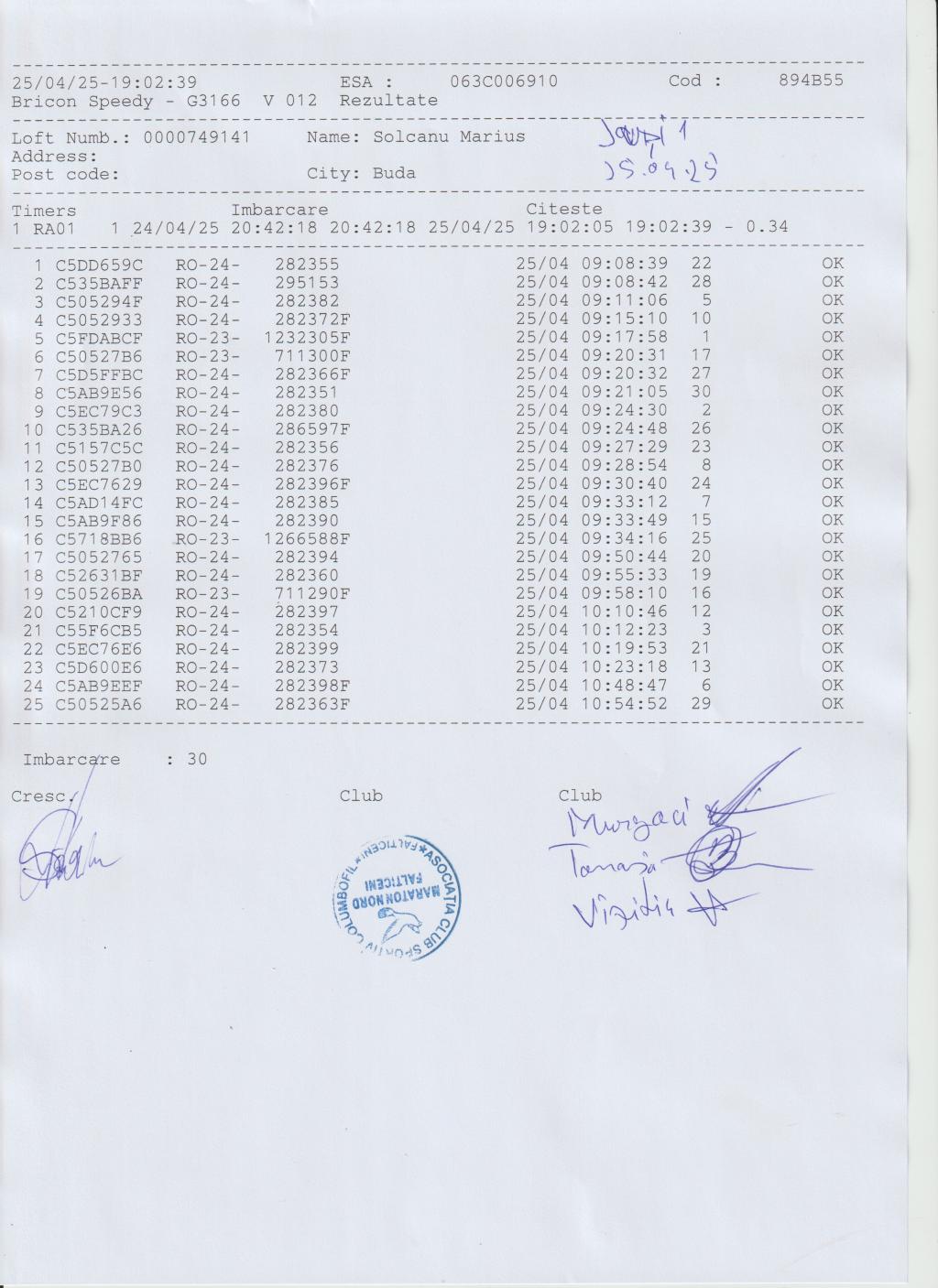 25 | Mihalache Mihai | SV1261 | BEN | Burdujeni |