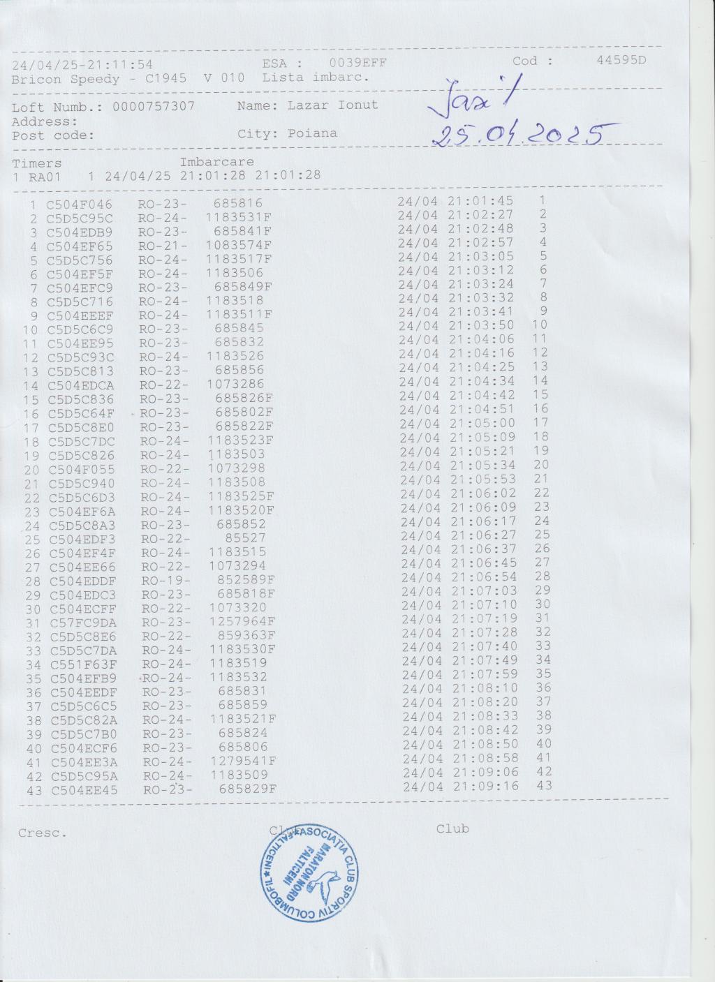 51 | Liteanu Ioan | SV1289 | BEN | Fair Play Bucovina |