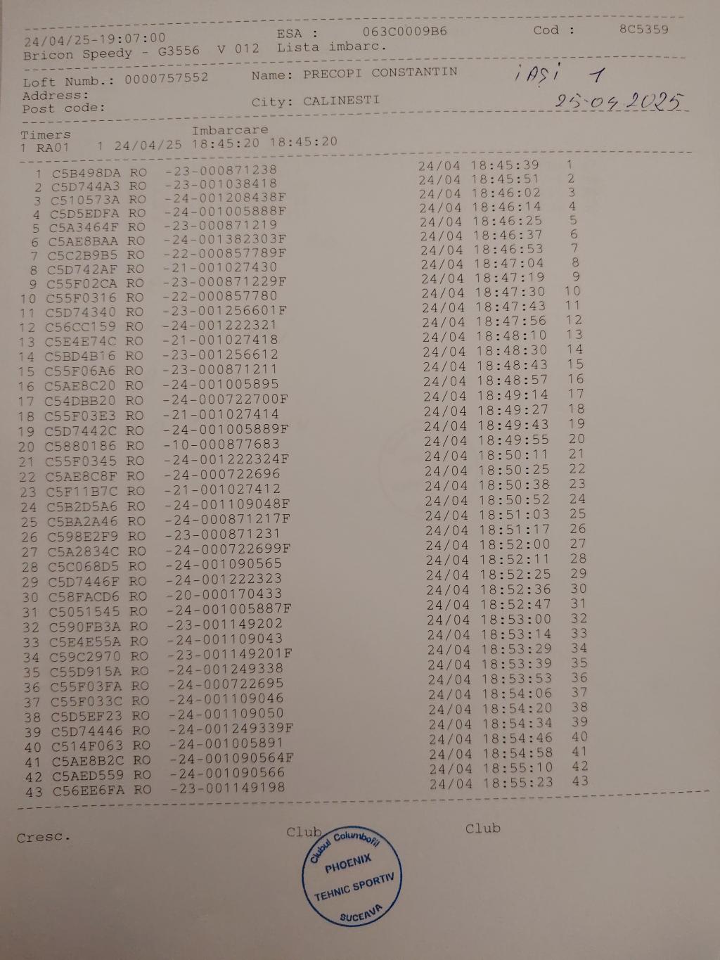124 | Ciornei Mihai | SV1919 | TOP | Phoenix Bucovina |