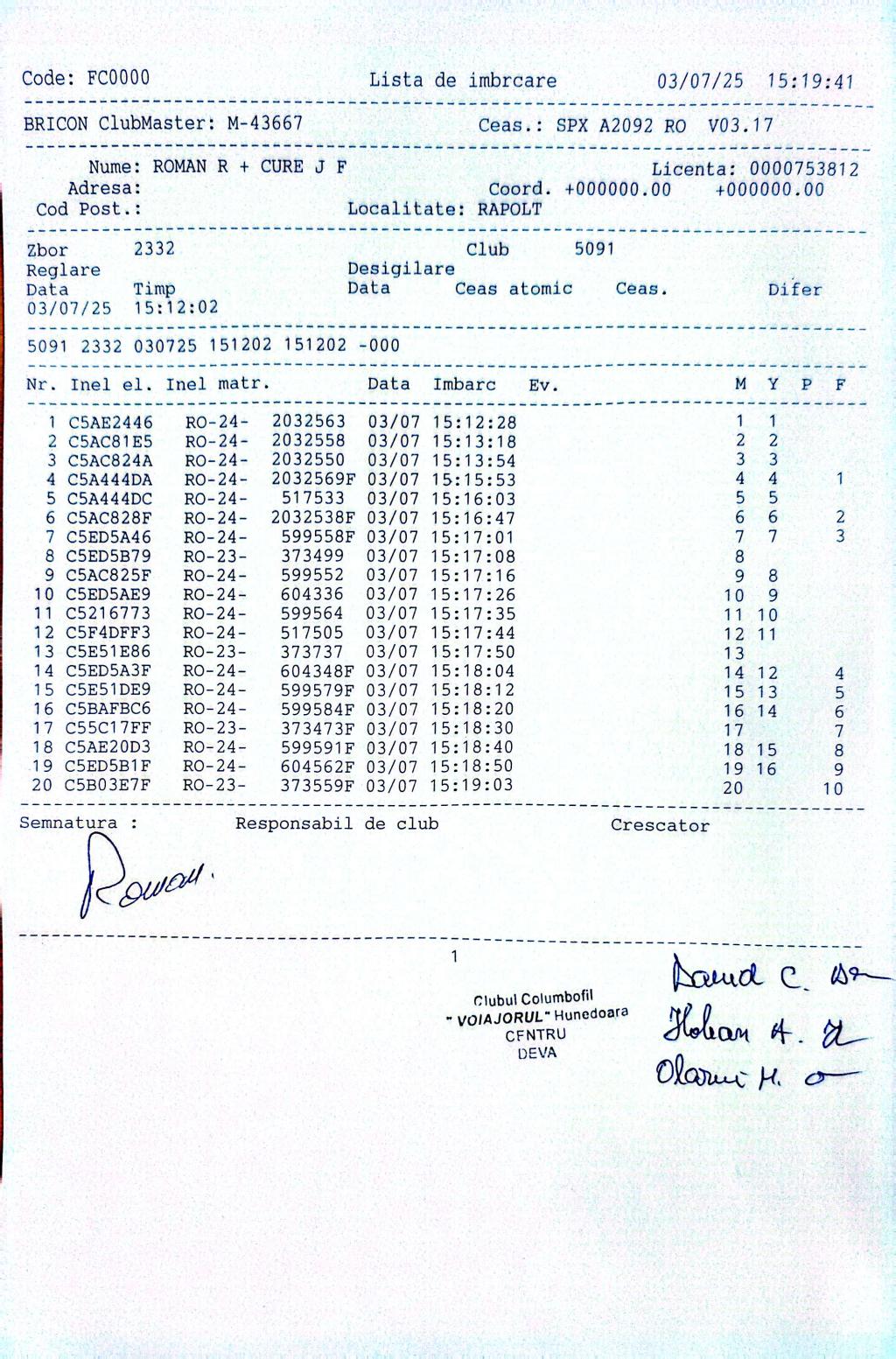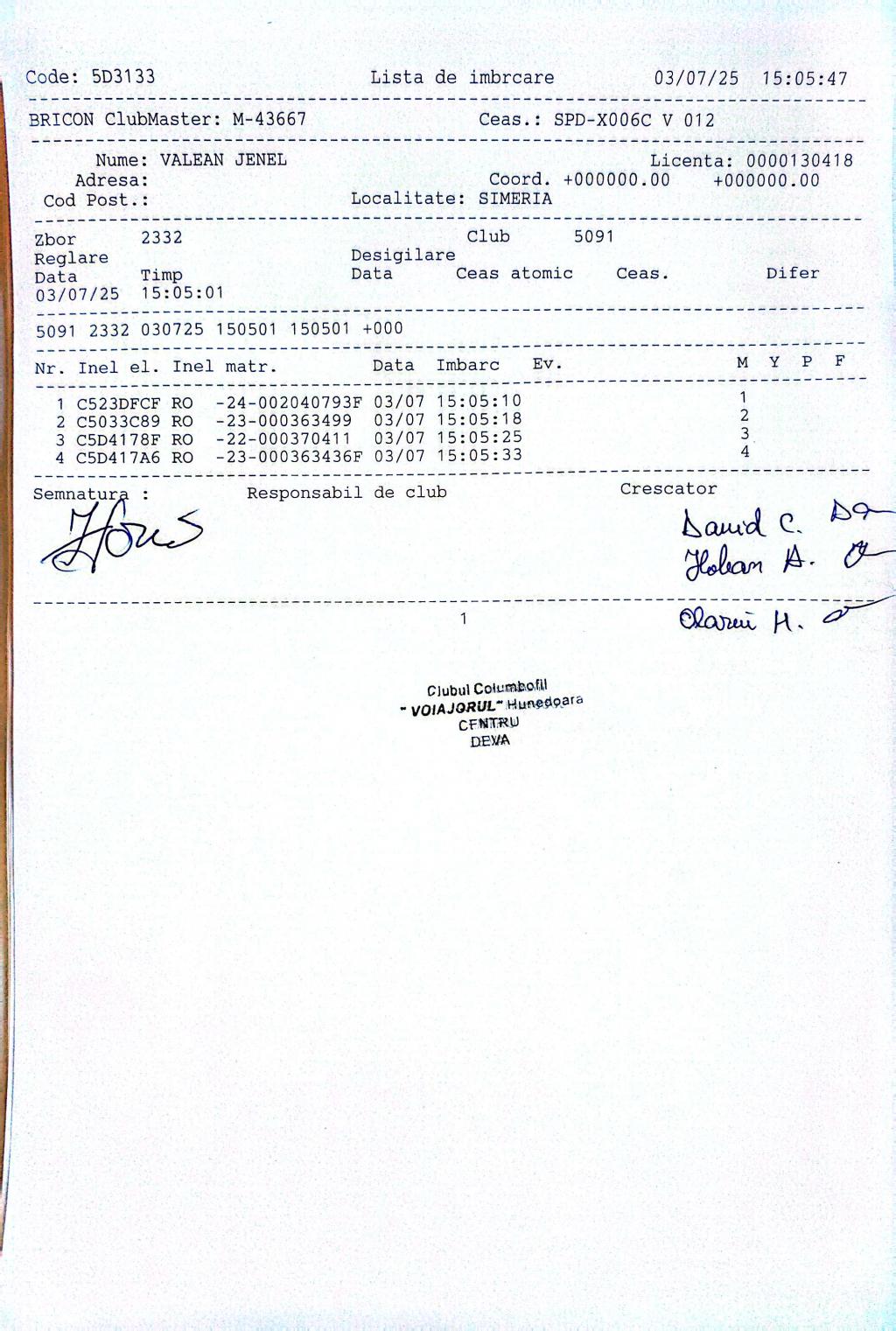 91 | M & C Muntean Petru | HD1546 | BRI | Deva | [IMB P0] | |