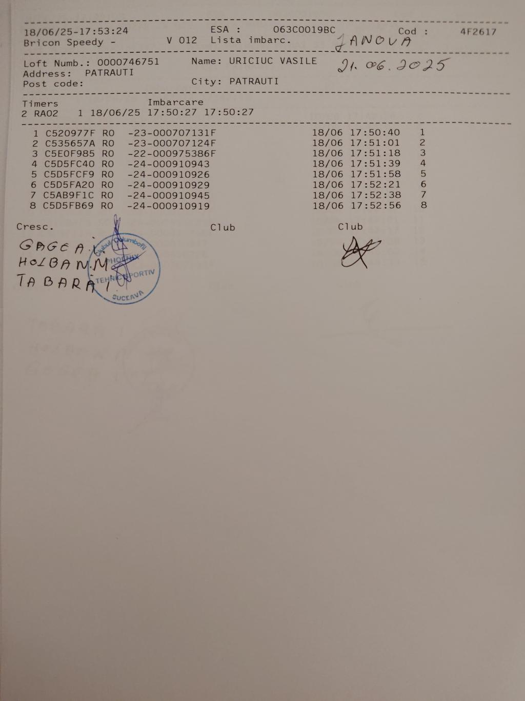 616 | Costiuc Walter | SV373 | BEN | Radauti |