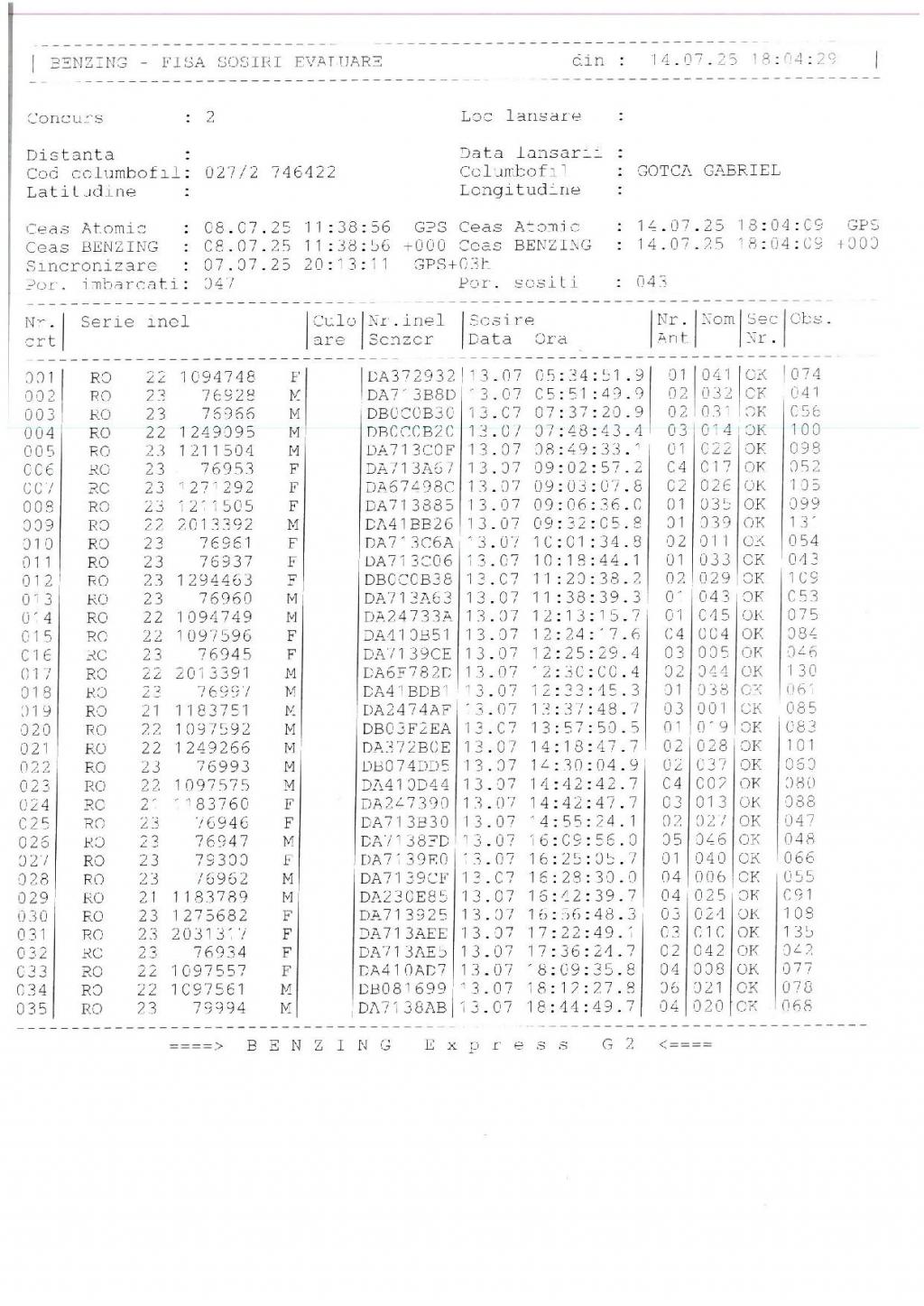 | 1125 | Zaharia Florin | IS9294 | BEN | Targu Frumos |