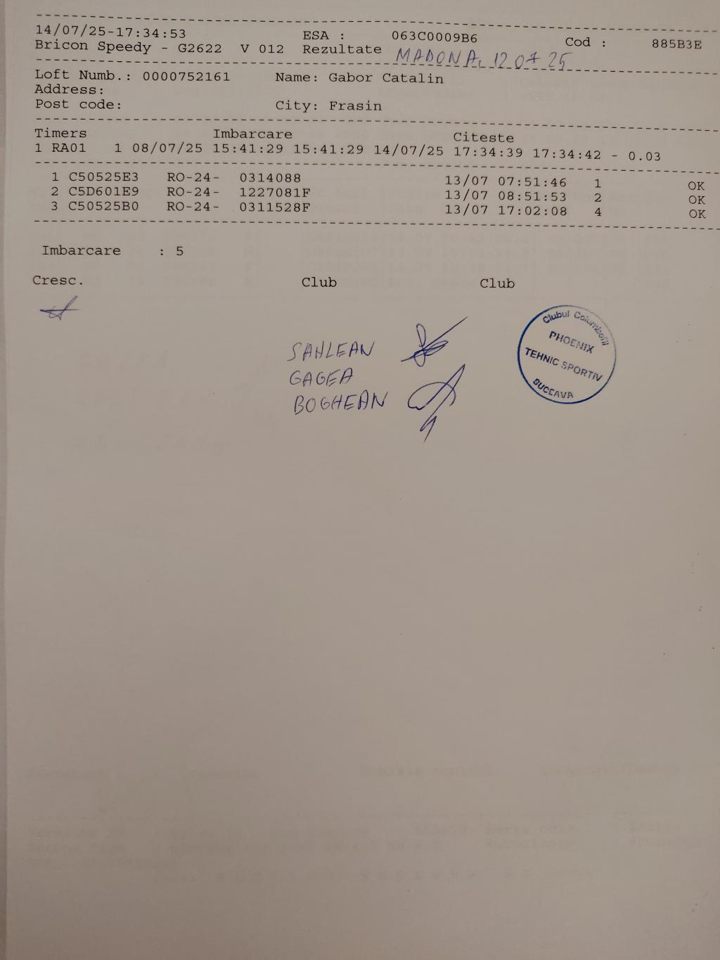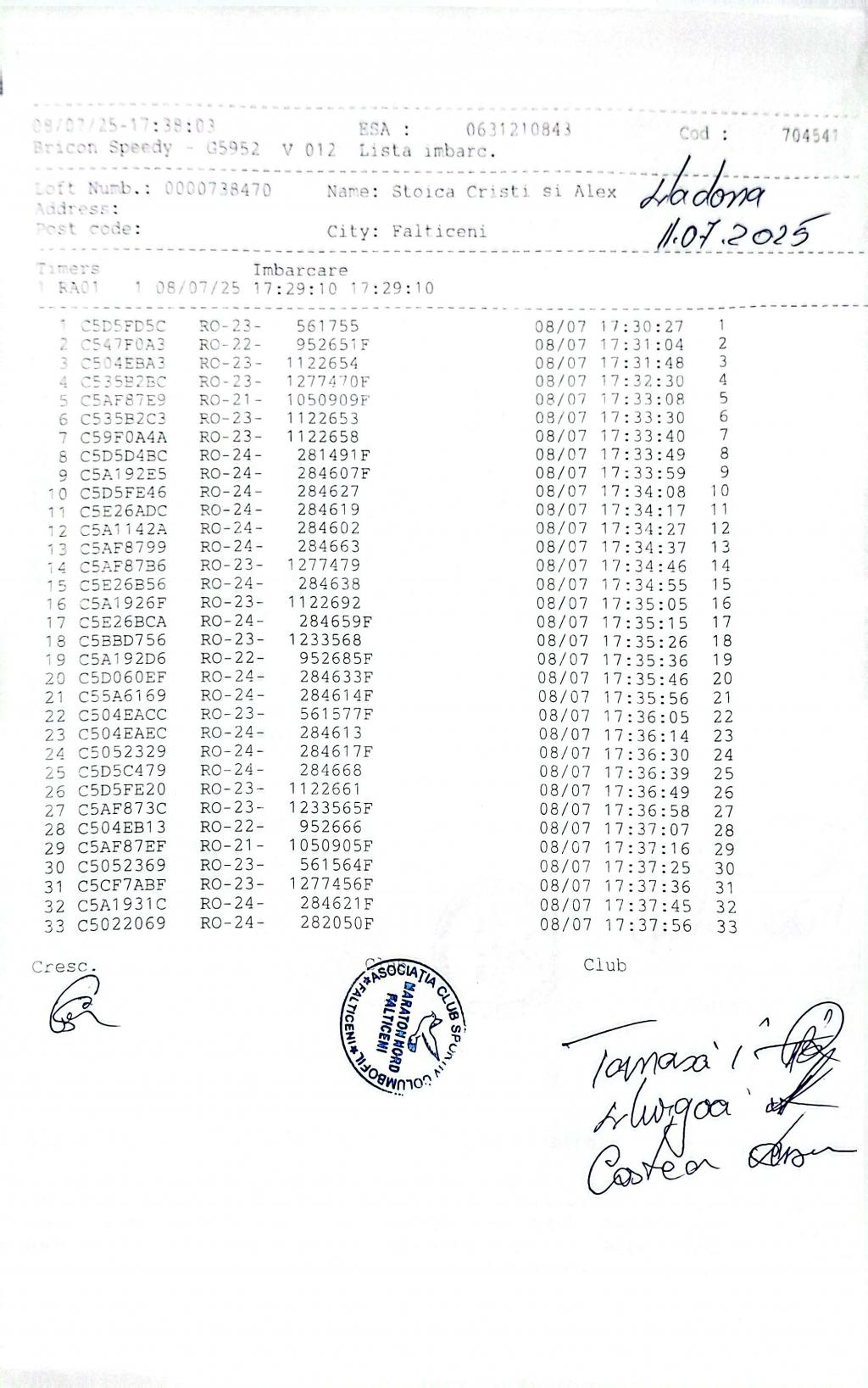 | 1105 | Coman Claudiu | IS9075 | TOP | Targu Frumos |
