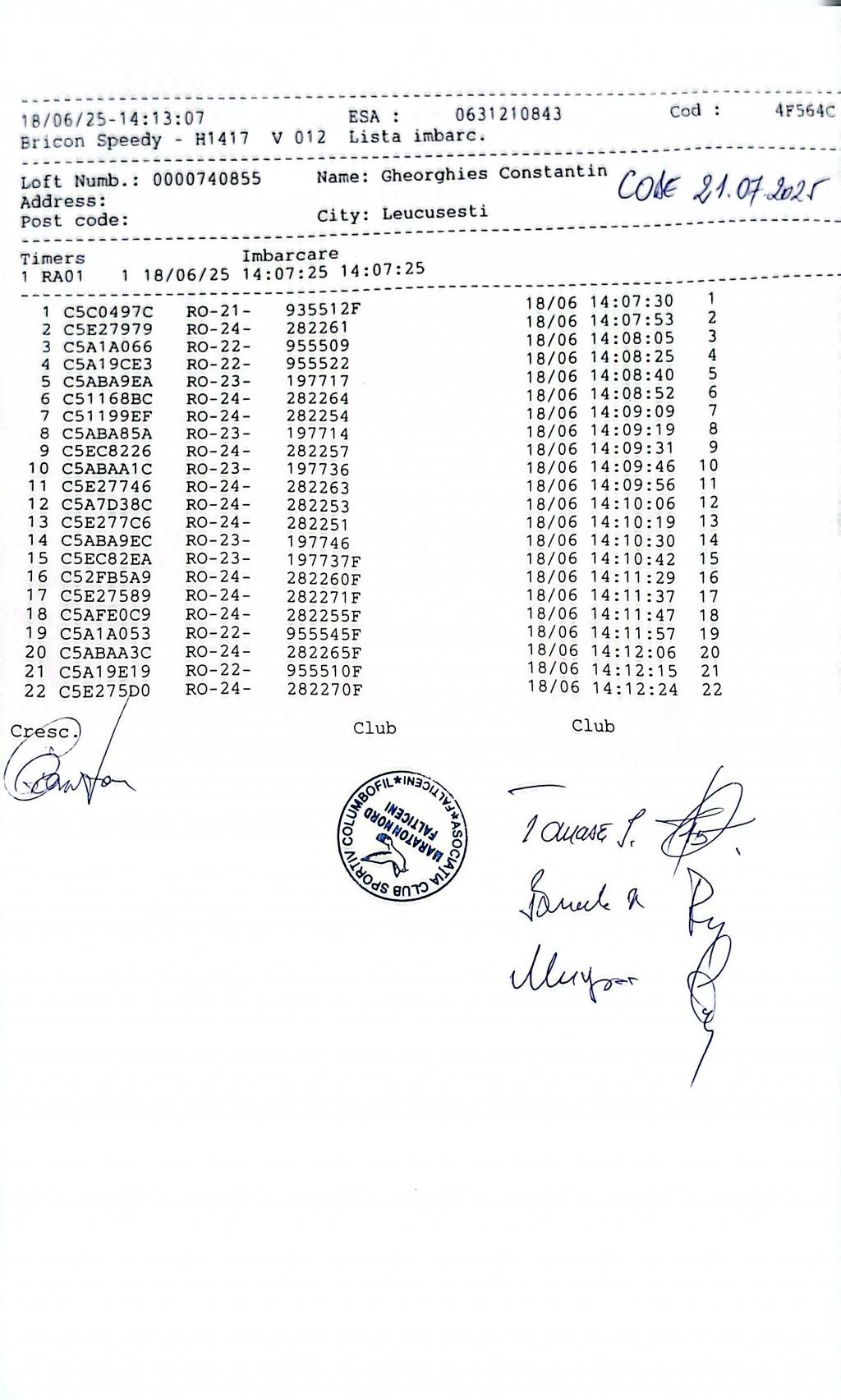 738 | Gavriliuc Marius Mitica | SV1575 | BEN | Radauti | [IMB P0] | |