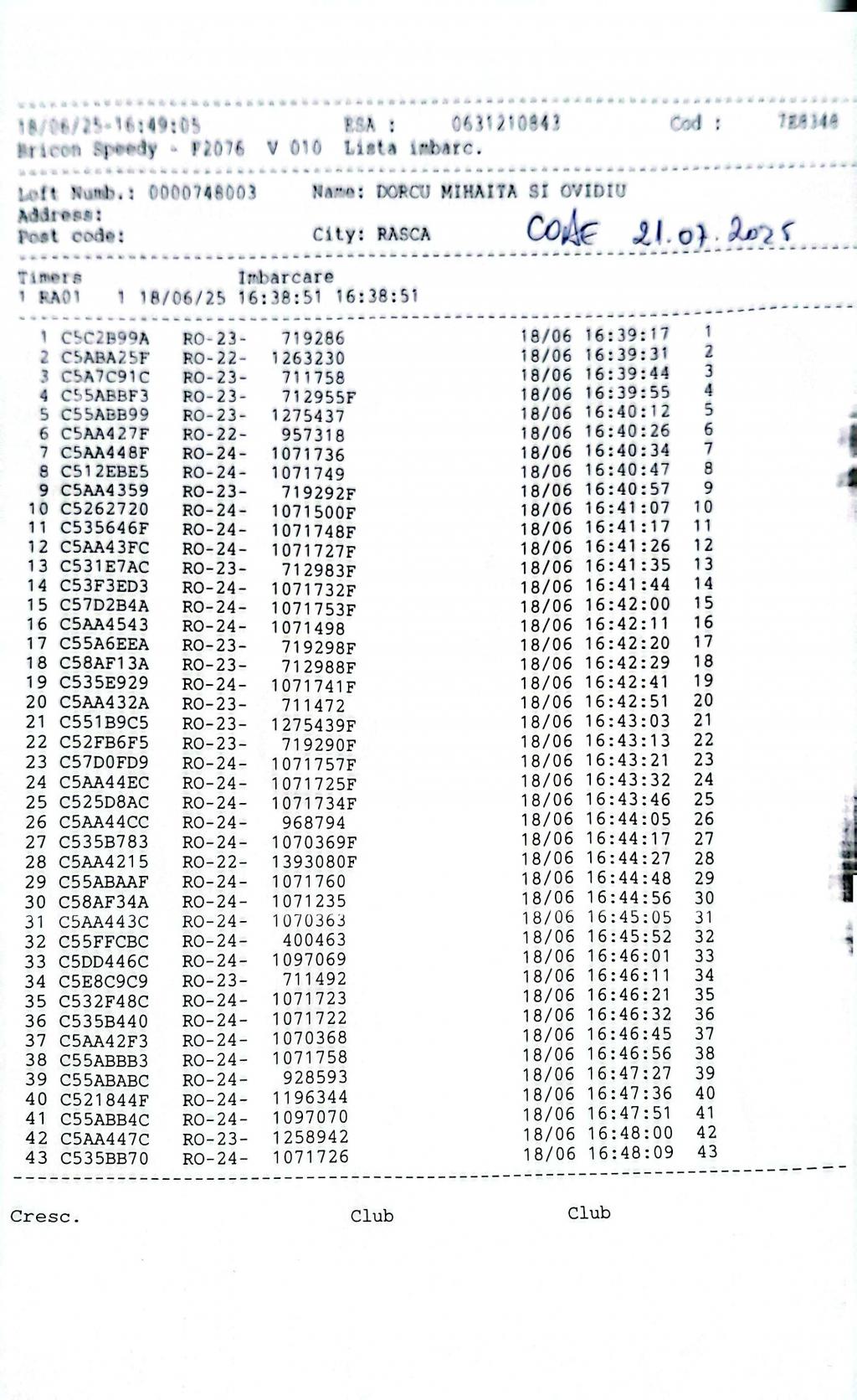 6 | Chitac Marius | BT9484 | BEN | Botosani | [IMB P0] | [DES P0] |