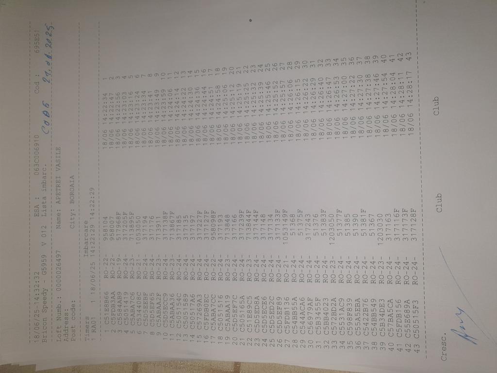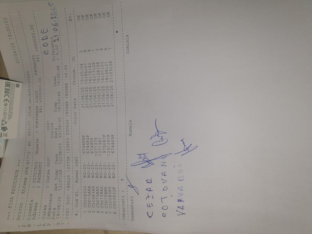 SIGILARE: [Sigilare BT86JAN, etapa Code din 21.06.2025, centrul Dorohoi ] [DESIGILARE AG 78 AKY] [SIGILARE SV 01 BZY] [SIGILARE AG78AKY] [sigilare CODE] [CODE] [SIGILARE MASINA CU DESTINATIA CENTRU BURDUJENI] [SIGILARE MASINA CU DESTINATIA CODE] [PRIMA MASINA CODE] [Masina soseste de la centrul Burdujeni] [A DOUA MASINA CODE] [Desigilare masina sosita de la Dorohoi] [Finalizare imbarcare maraton extrem Code] [plecare masini de la centrul Radauti] [Sigilare masina Code ] [Desigilare masina sosita de la Radauti] |