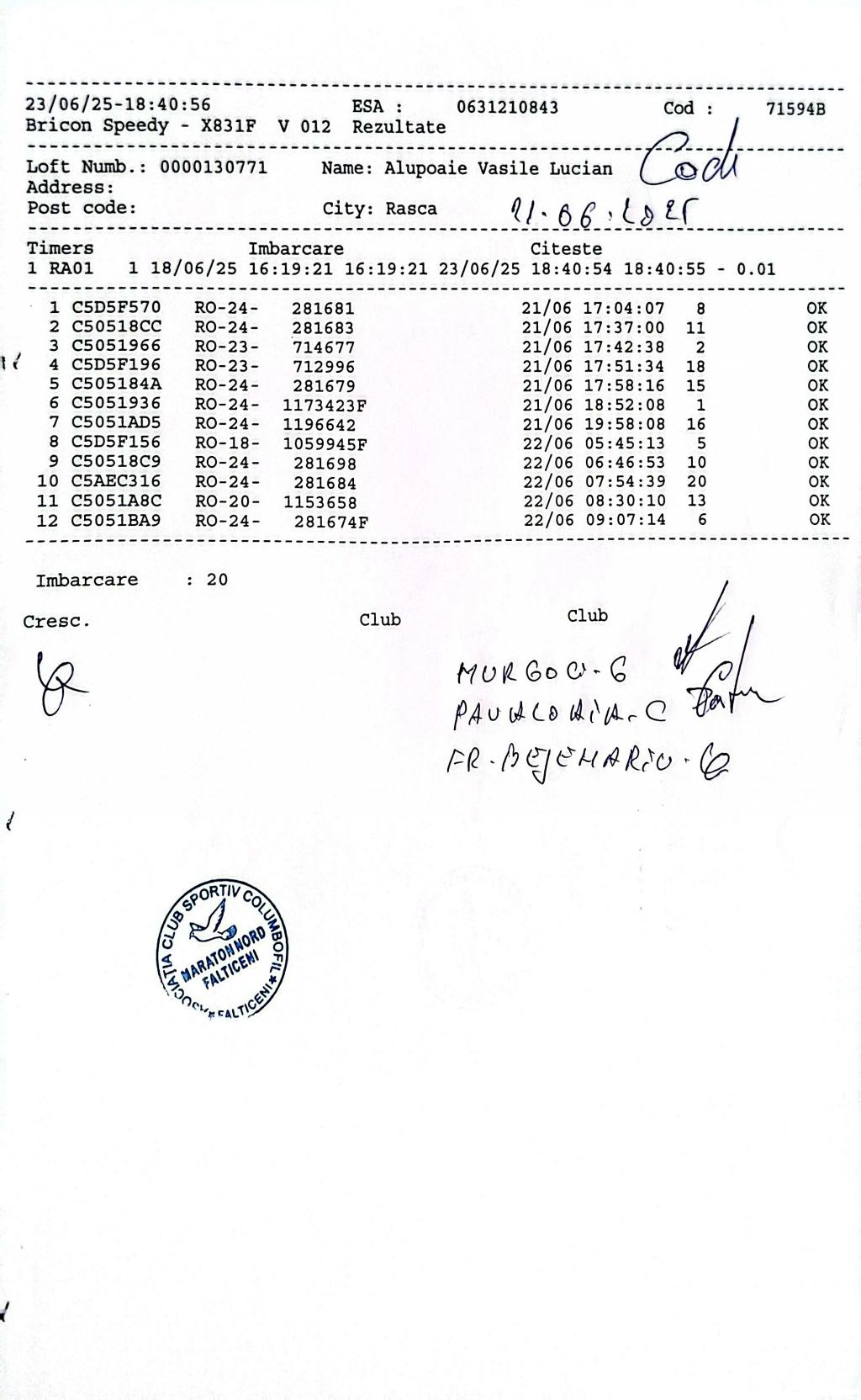 784 | Sfichi Lucian | SV1218 | BEN | Radauti |