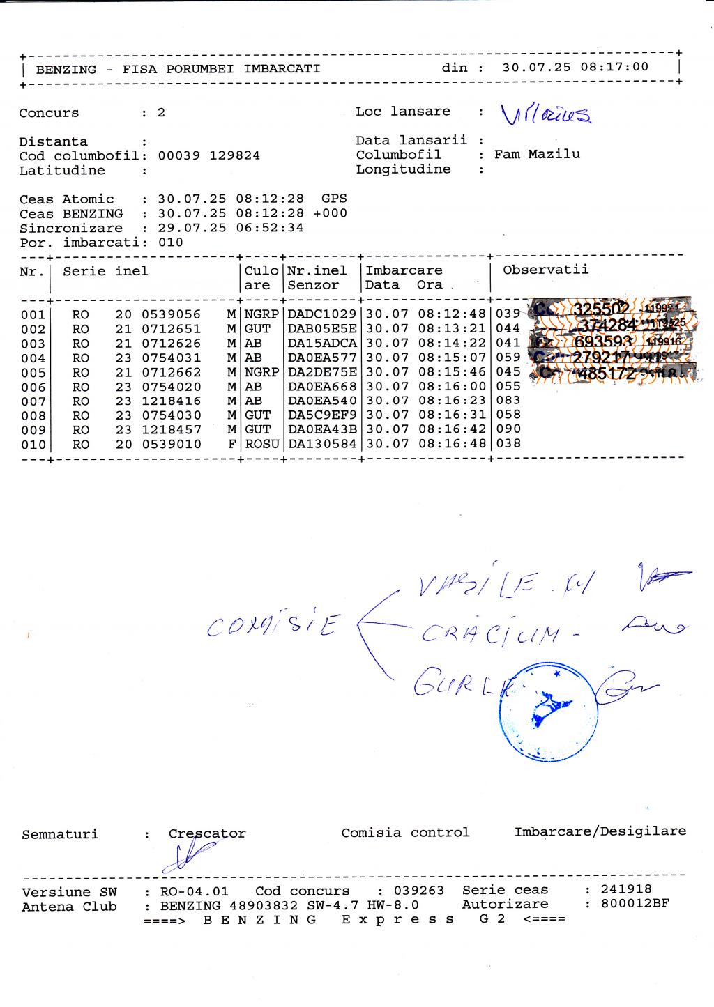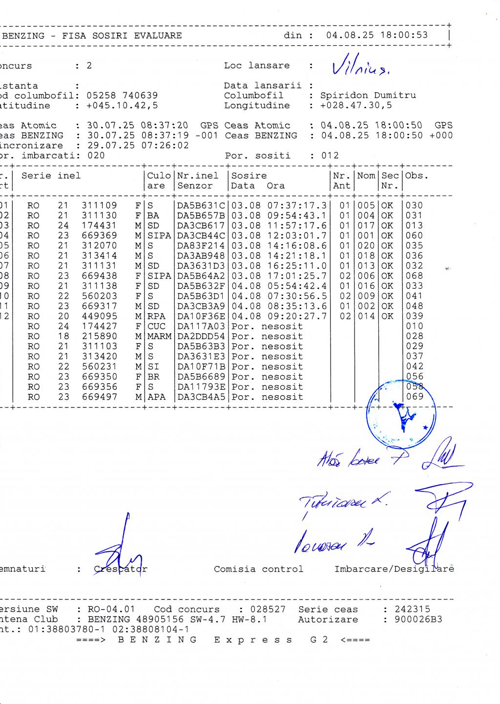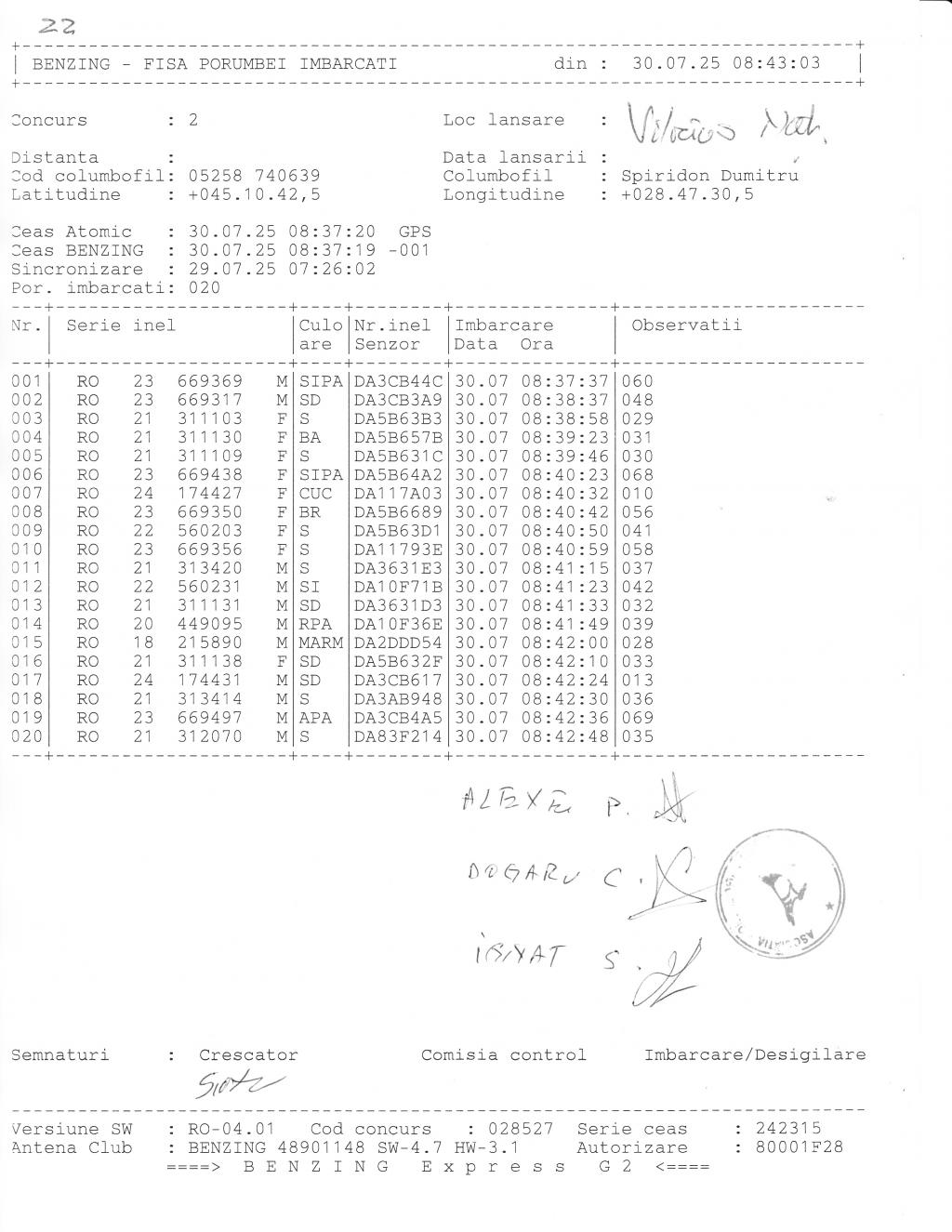 | 230 | Simion Dan+nectarie | BZ9769 | TOP | Ramnicu Sarat |