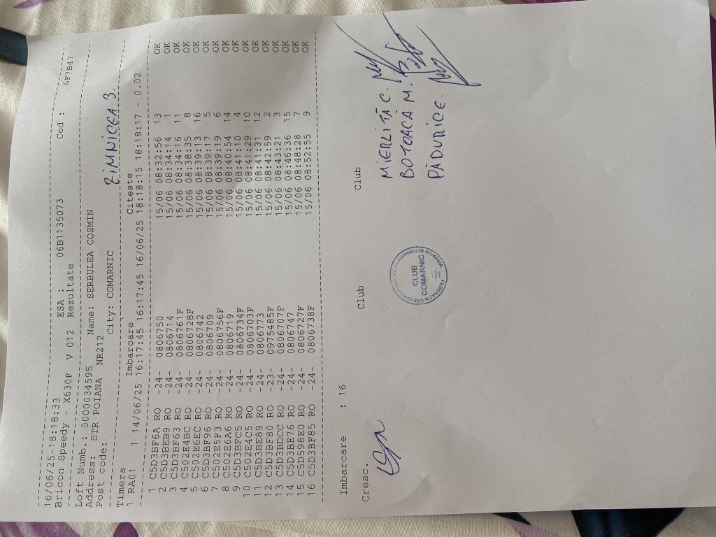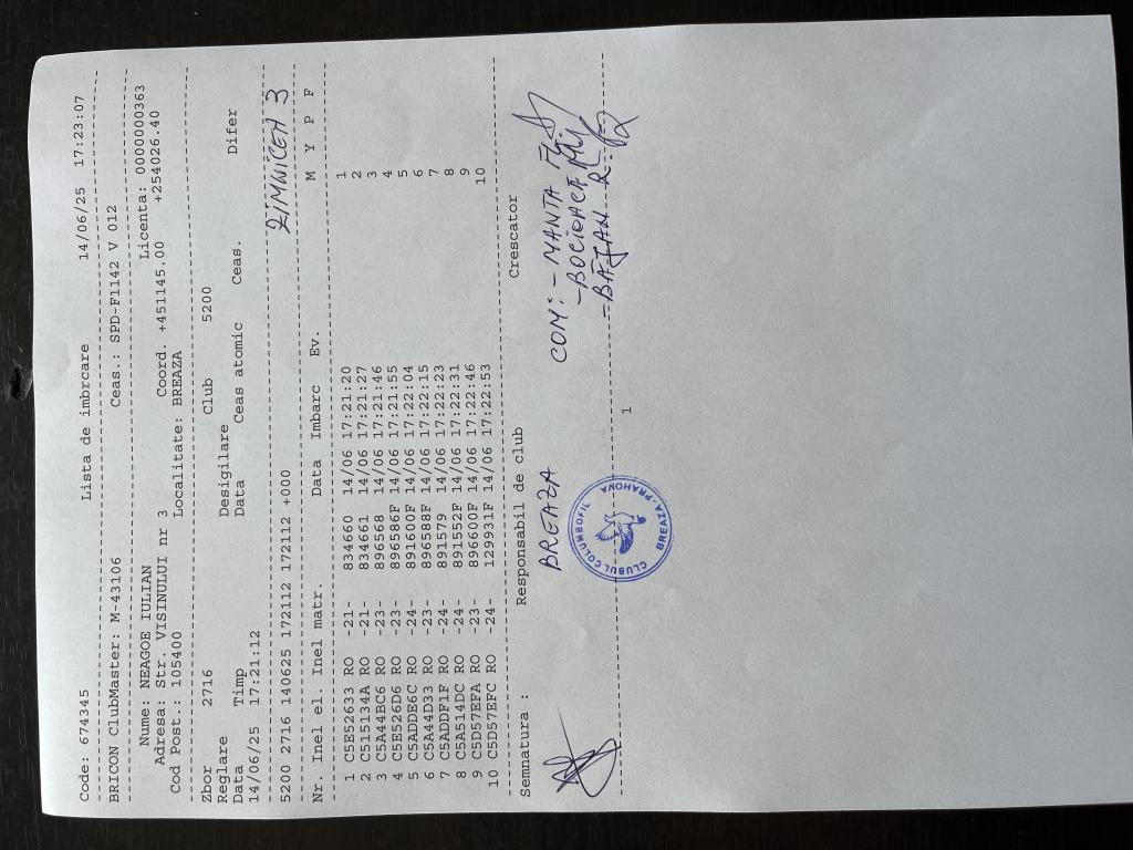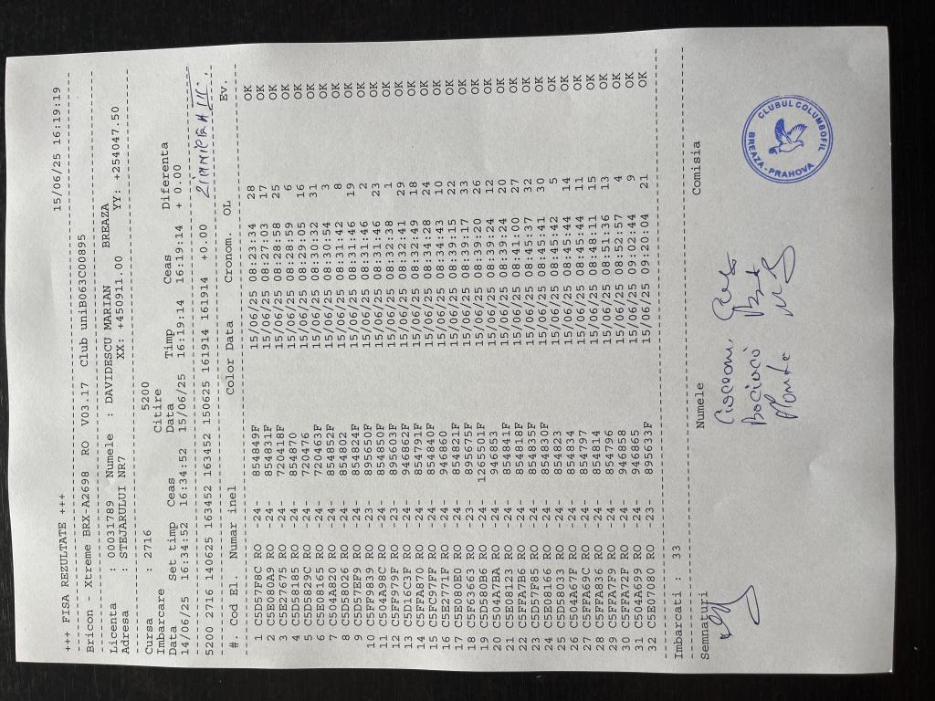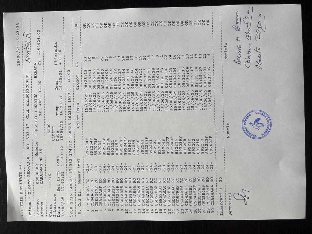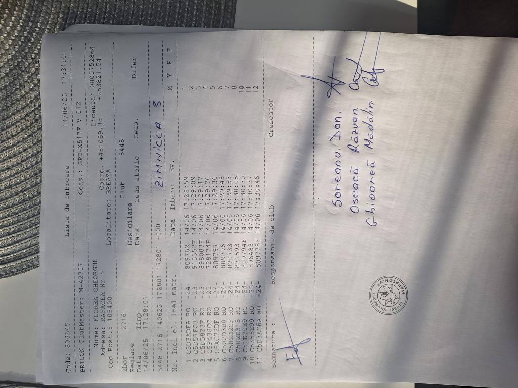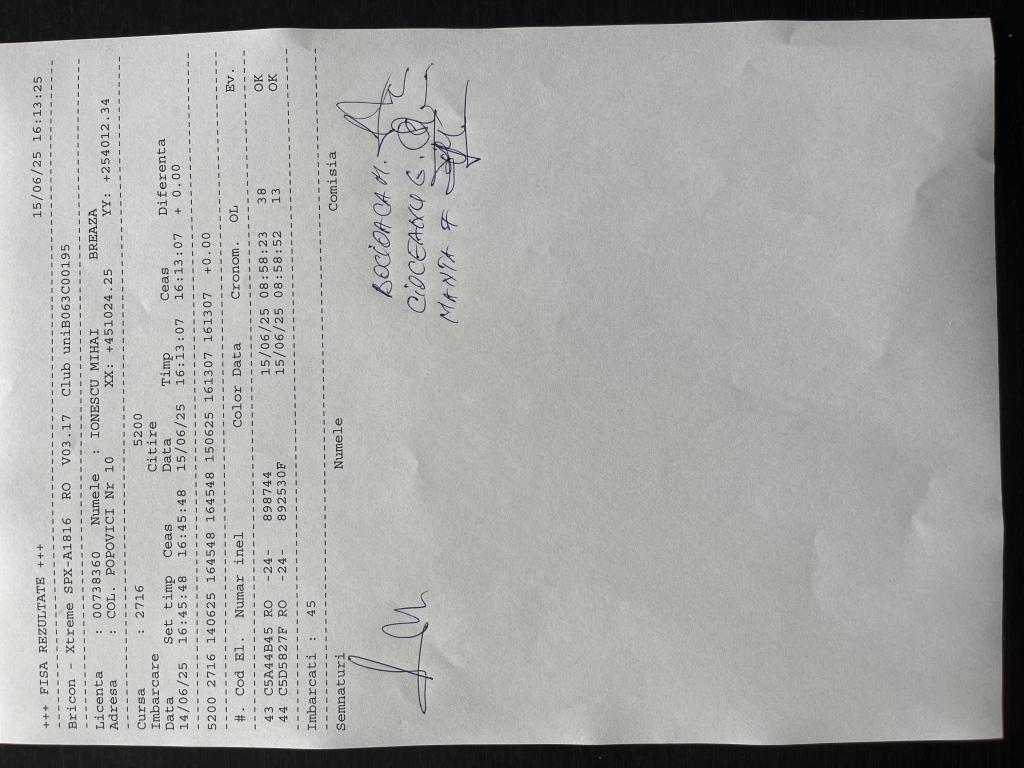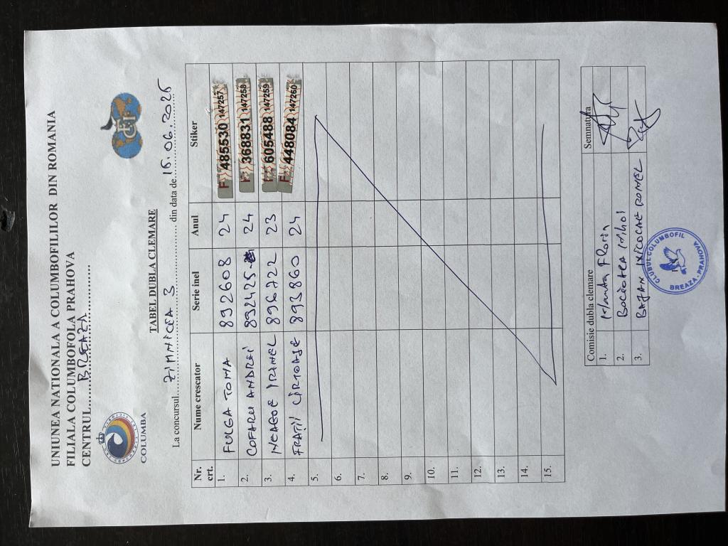 | 242 | Ghinoiu Raul& Darius | PH124567 | TOP | Fieni |