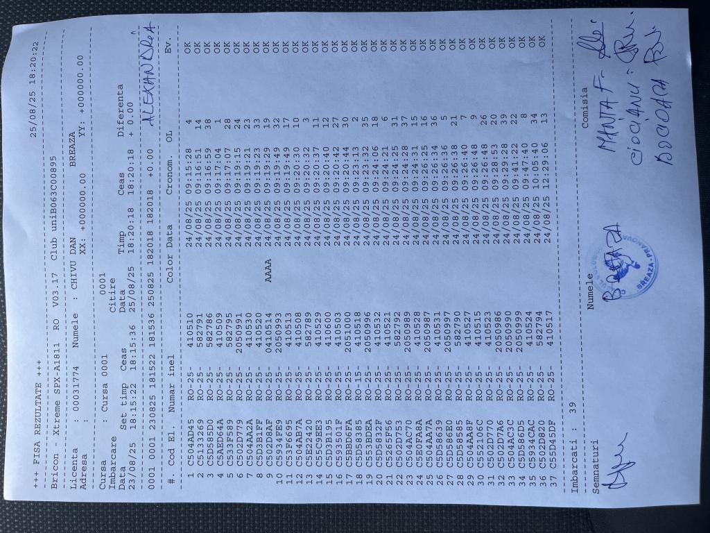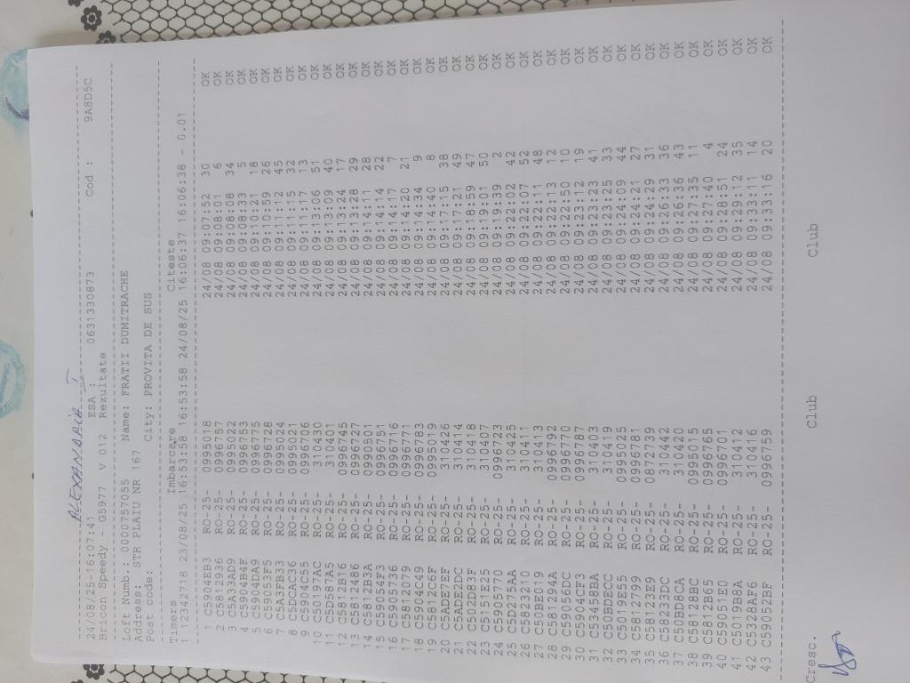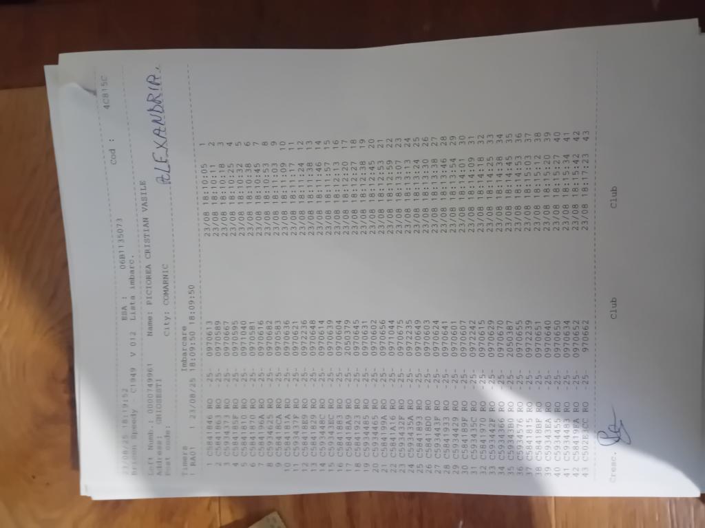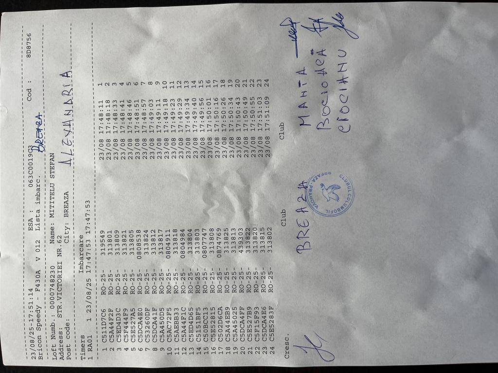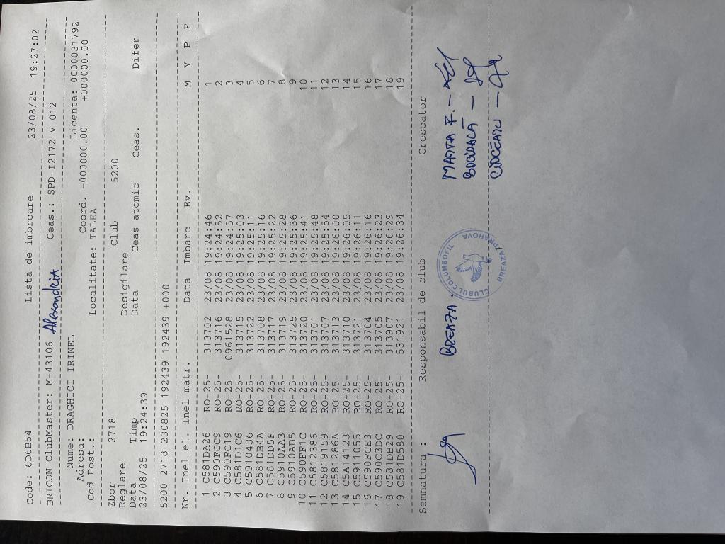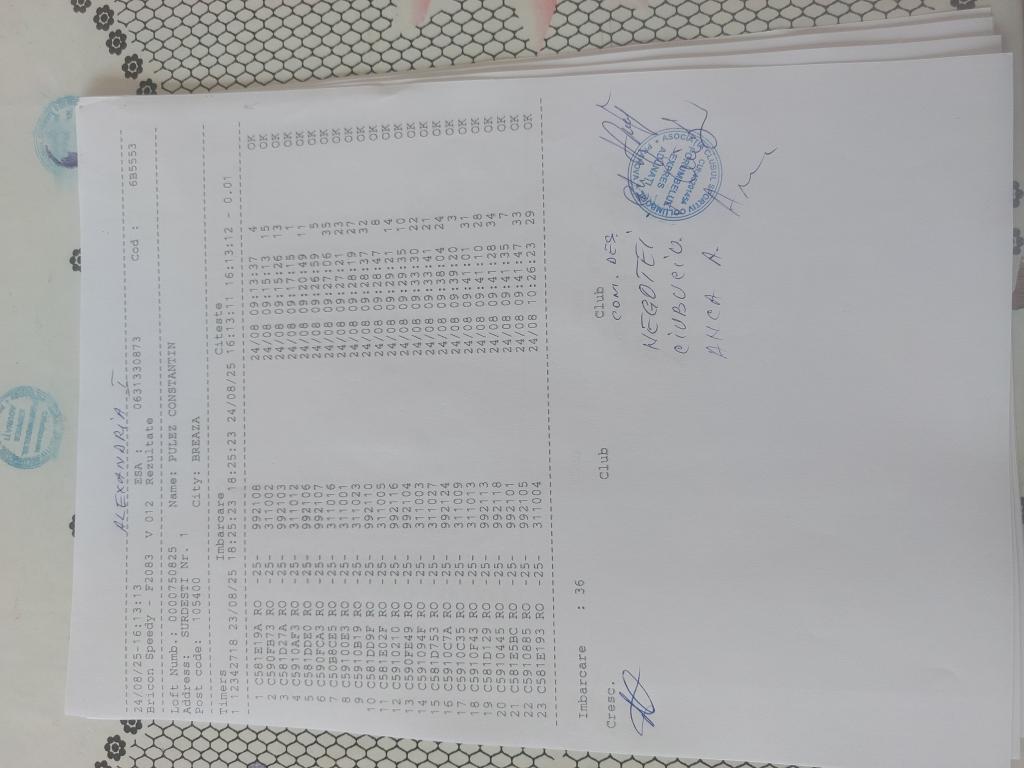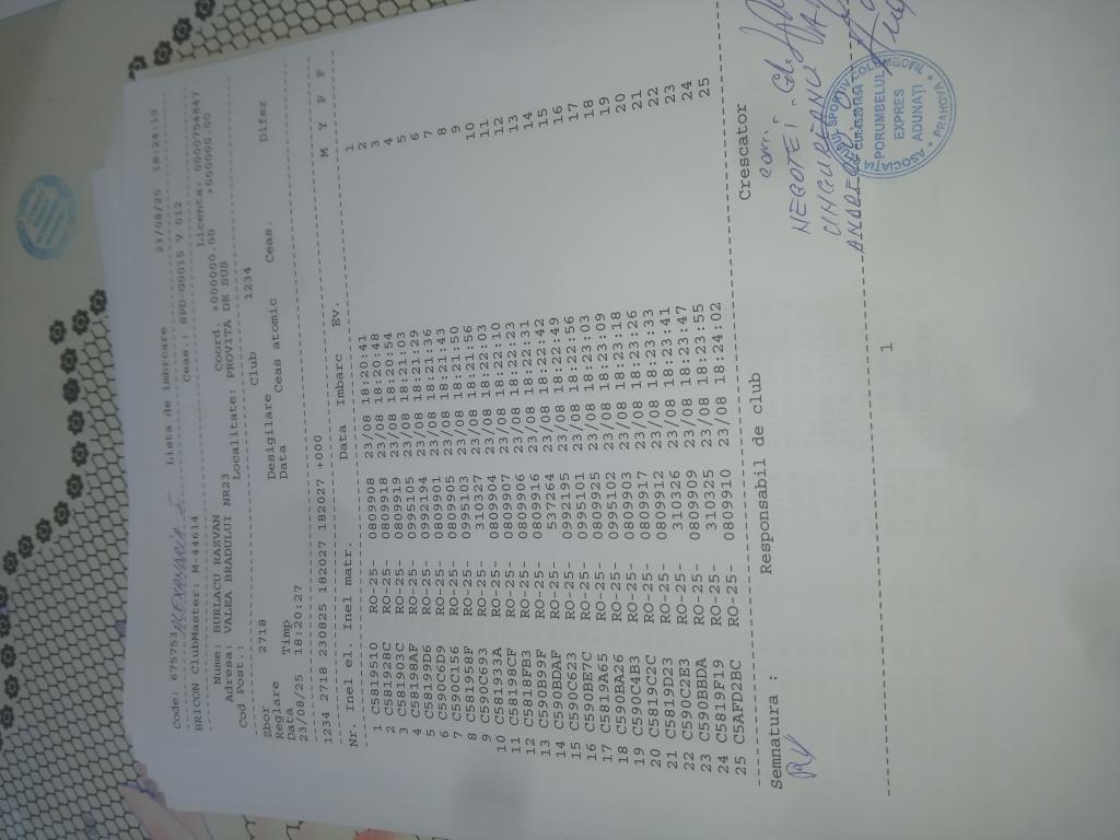 SIGILARE: [Sigilare Valea Tarsei] [Desigilare Adunati] [Terminat imbarcare club Busteni cursa Alexandria 24.08.2025] [Sigilare adunati ] [Sigilare Breaza] [desigilare Comarnic] [Sigilare Brebu] [sigilare Comarnic] [Sigilare Cb.Fieni -ALEXANDRIA] [Verificare sigilii -Cb.Fieni] [Sigilare Cornu ] [Desigilare Cornu ] [sigilare Banesti] [desigilare Banesti] [Sigilare Comarnic2] [desigilare Comarnic2] |