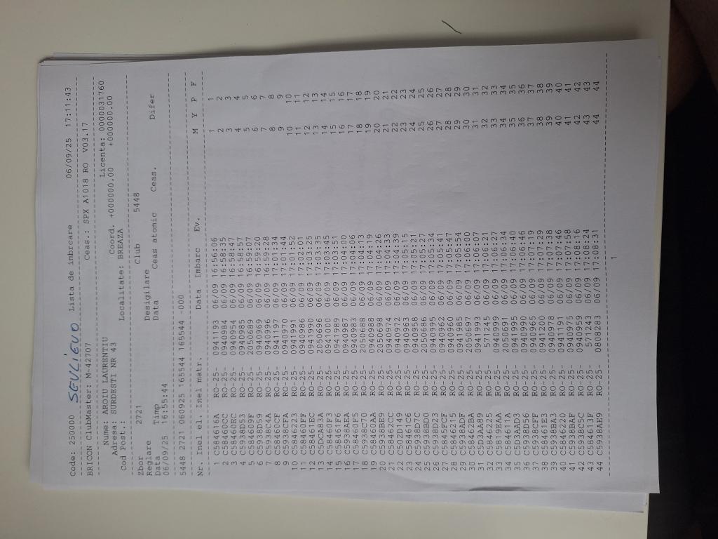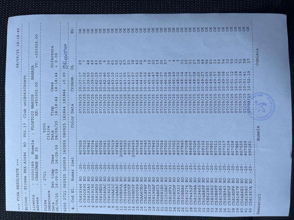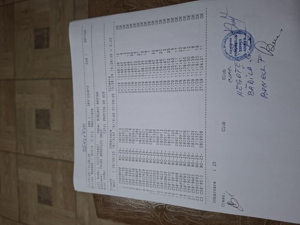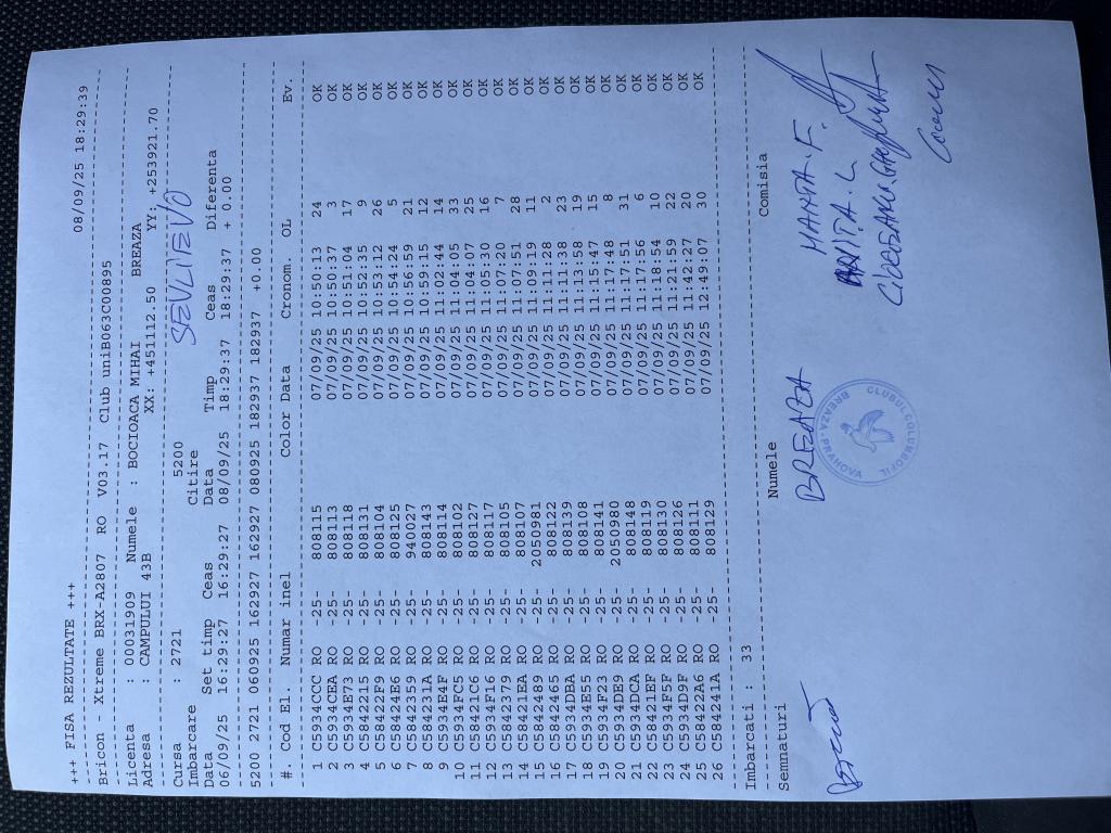 | 288 | Ghinoiu Raul& Darius | PH124567 | TOP | Fieni |
