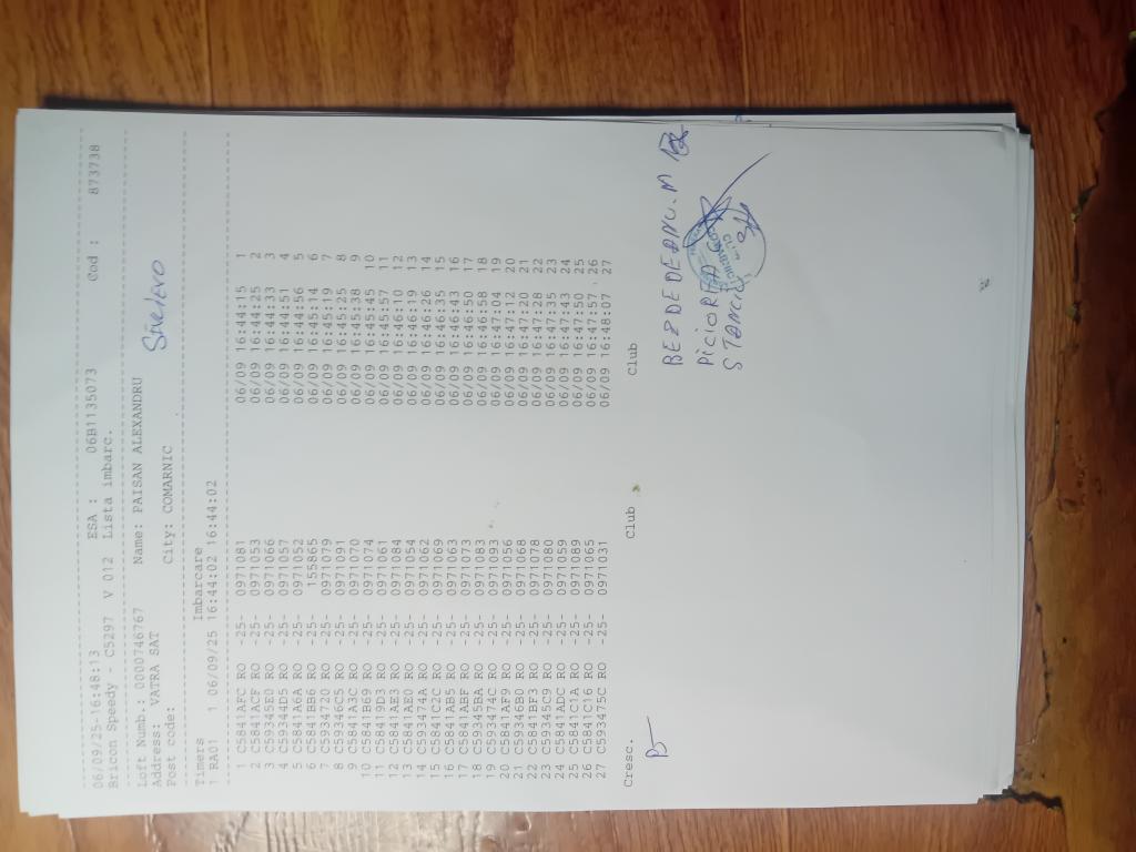 | 267 | Negotei Razvan | PH10360 | BRI | Expres Adunati | [IMB P0] | [DES P0] |