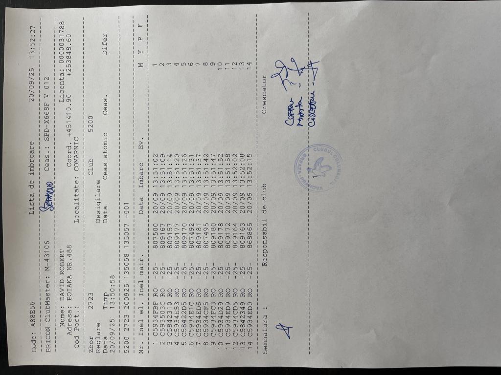 | 213 | Serb Marius | PH9227 | BRI | Valea Tarsei- Breaza | [IMB P0] | [DES P0] |