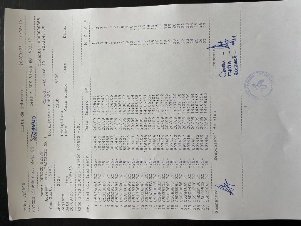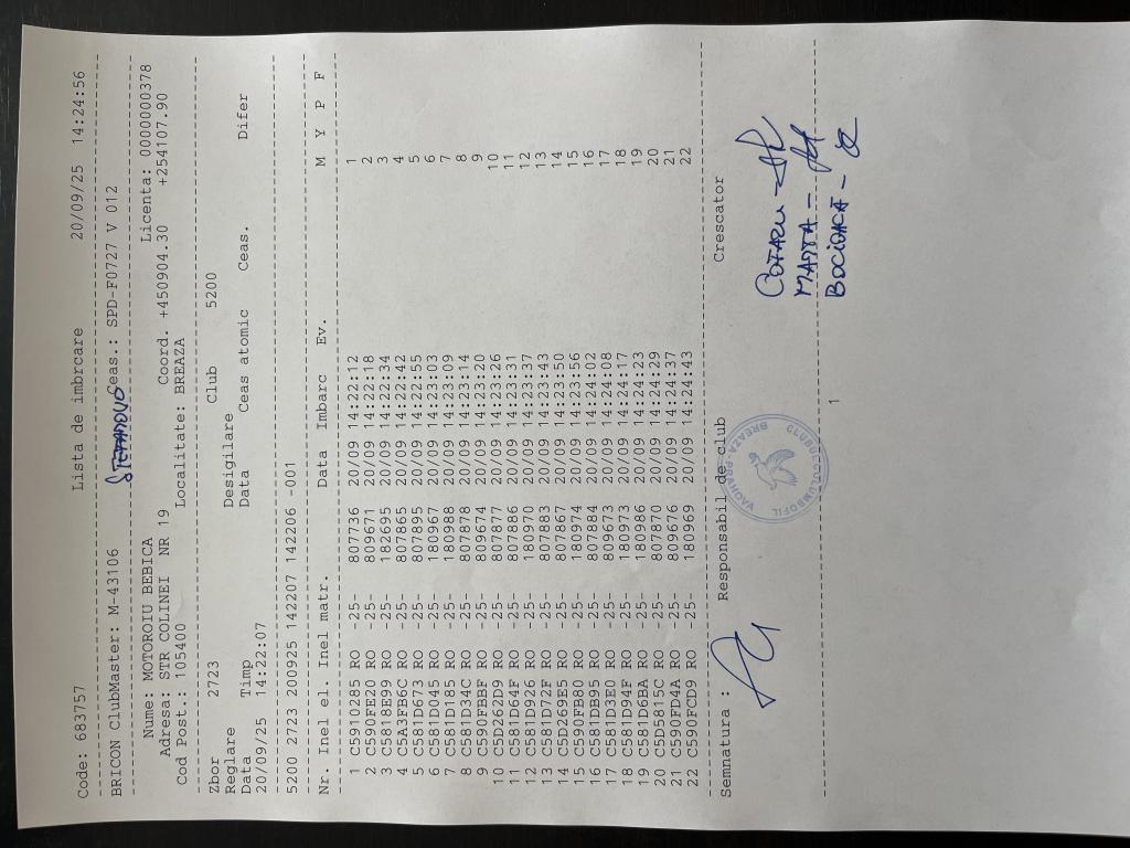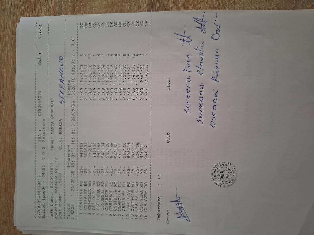 | 179 | Ghinoiu Raul& Darius | PH124567 | TOP | Fieni |