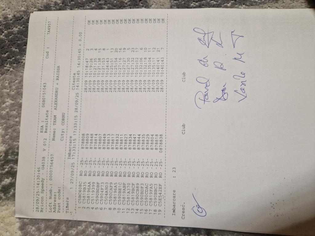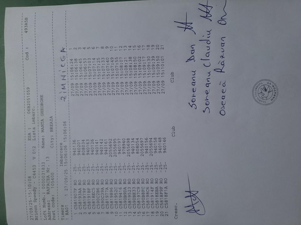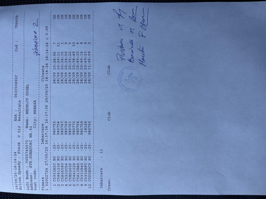 | 139 | Ghinoiu Raul& Darius | PH124567 | TOP | Fieni |