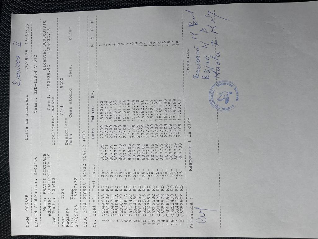 | 160 | Manta Stefan | PH124201 | BRI | Valea Tarsei- Breaza | [IMB P0] | [DES P0] |