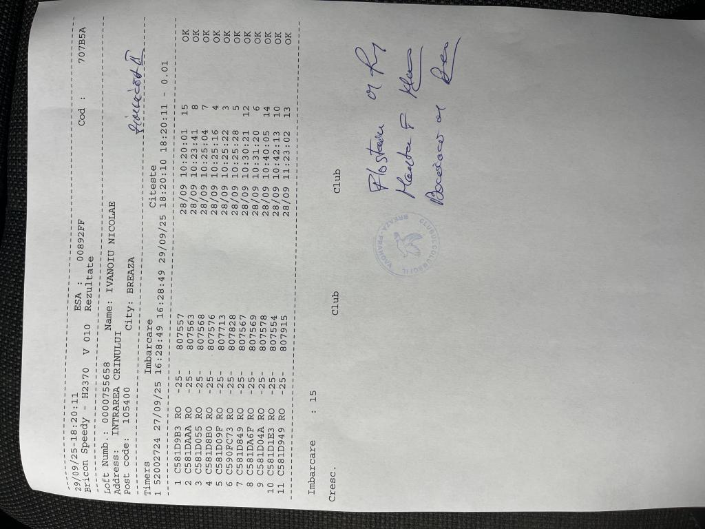 | 151 | BoroČ™ Mihnea | PH124646 | BRI | Valea Tarsei- Breaza | [IMB P0] | [DES P0] |
