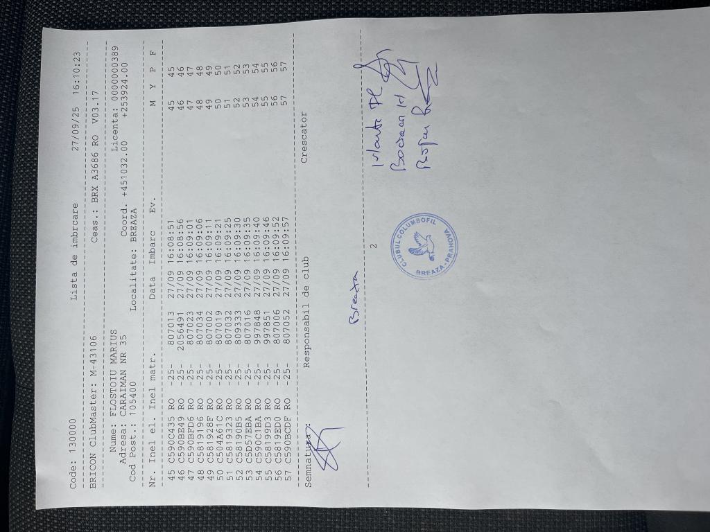 | 61 | Vijeu Ionut | PH55903 | BRI | Comarnic | [IMB P0] | |