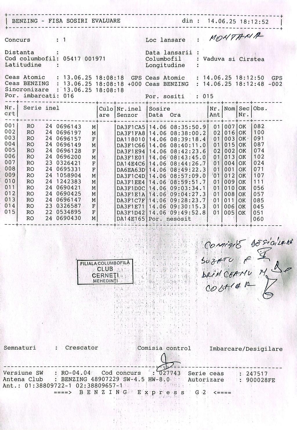| 15 | Madalin | MH1596 | BEN | Cerneti |