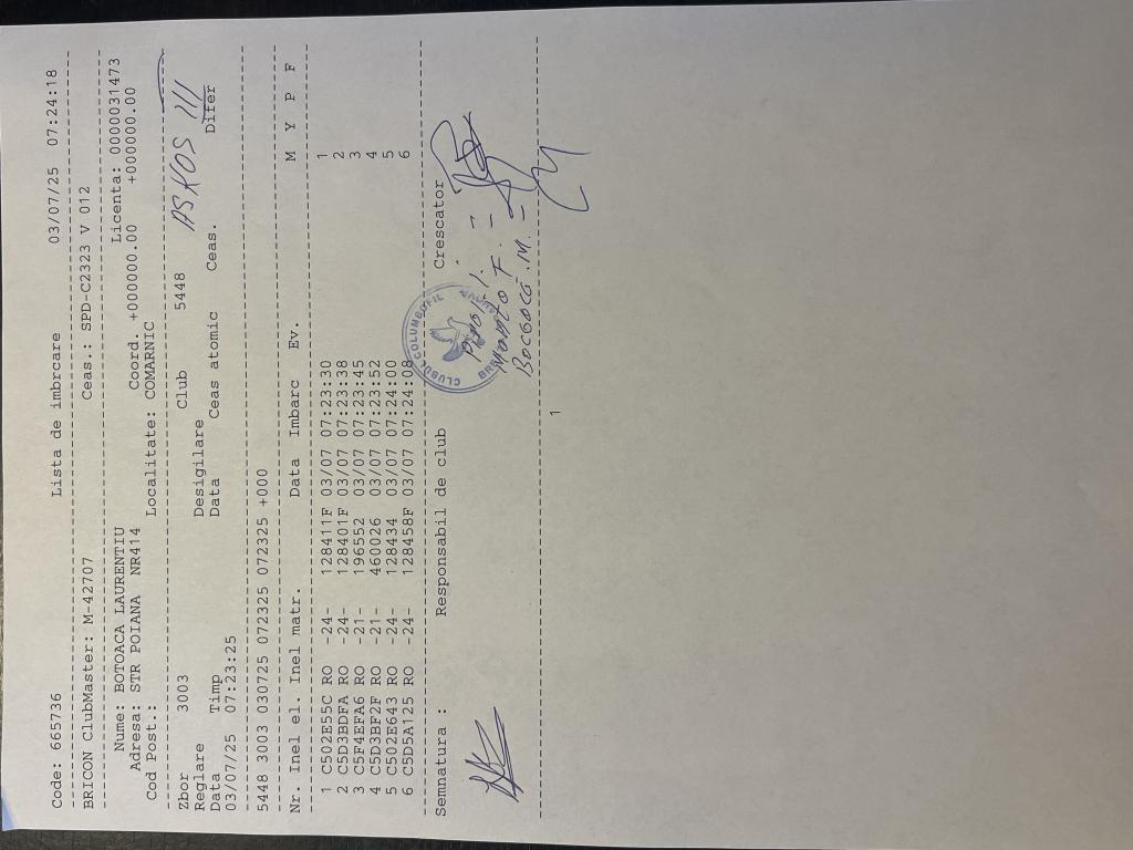 | 5 | Curca Gheorghe | PH7061 | BEN | Berca | [IMB P0] | [DES P0] |