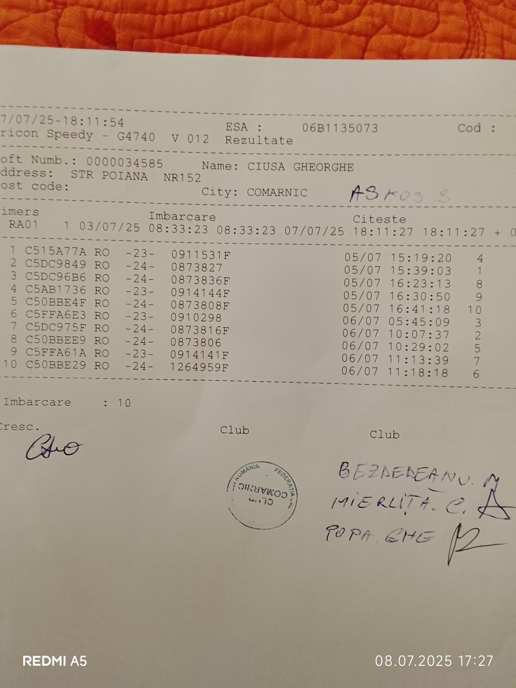 | 8 | Dumitrascu George | PH7121 | TOP | Berca |