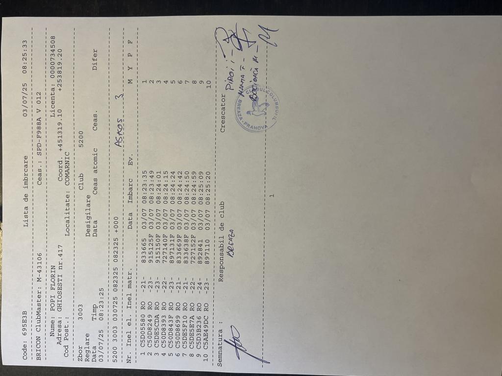 | 4 | Buduianu Robert | PH7005 | TOP | Berca |