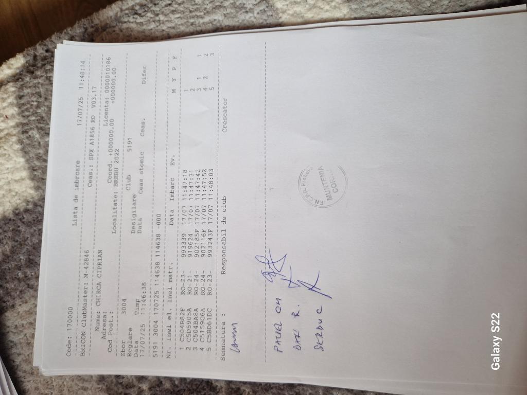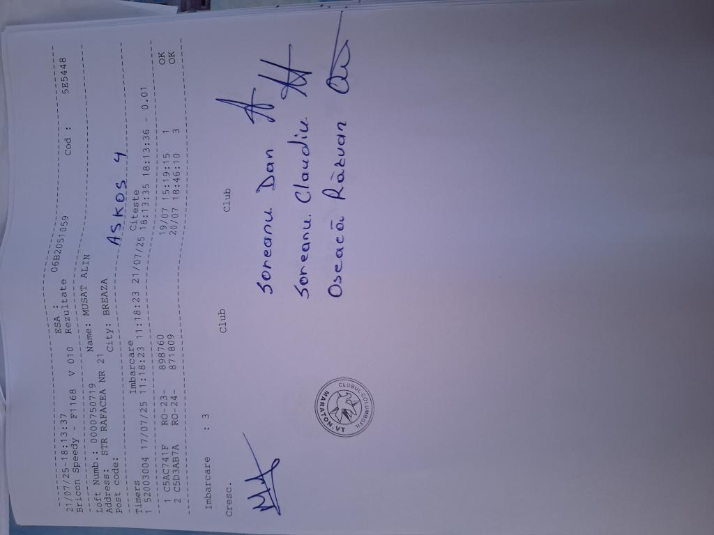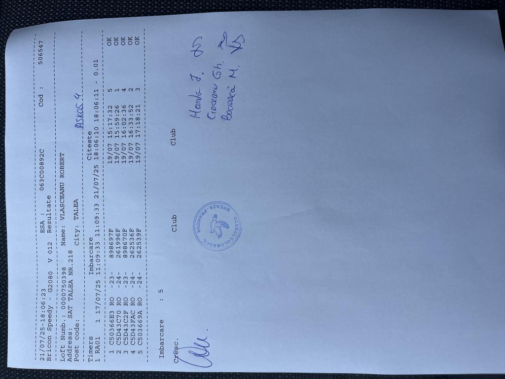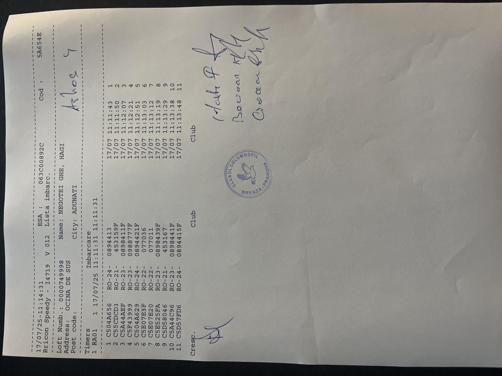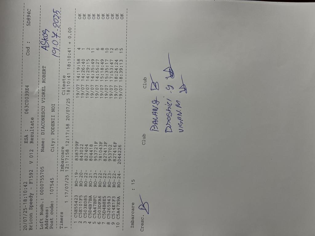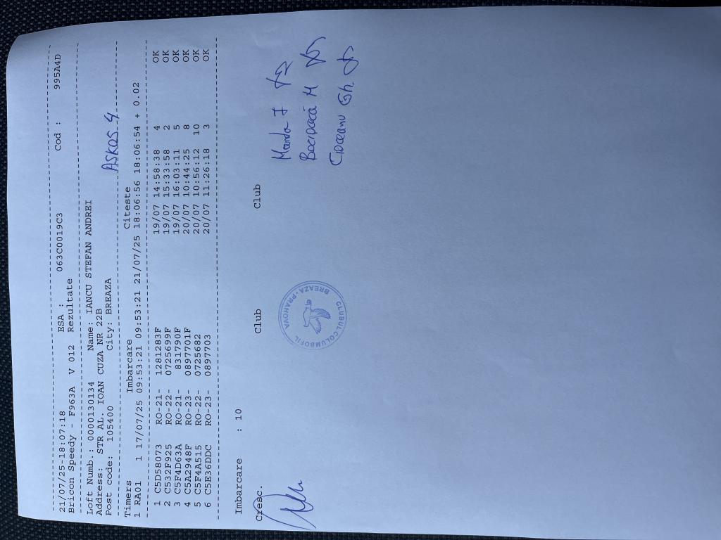 | 19 | Neacsu Catalin | PH7097 | TOP | Berca |