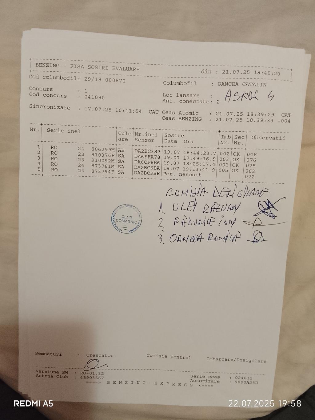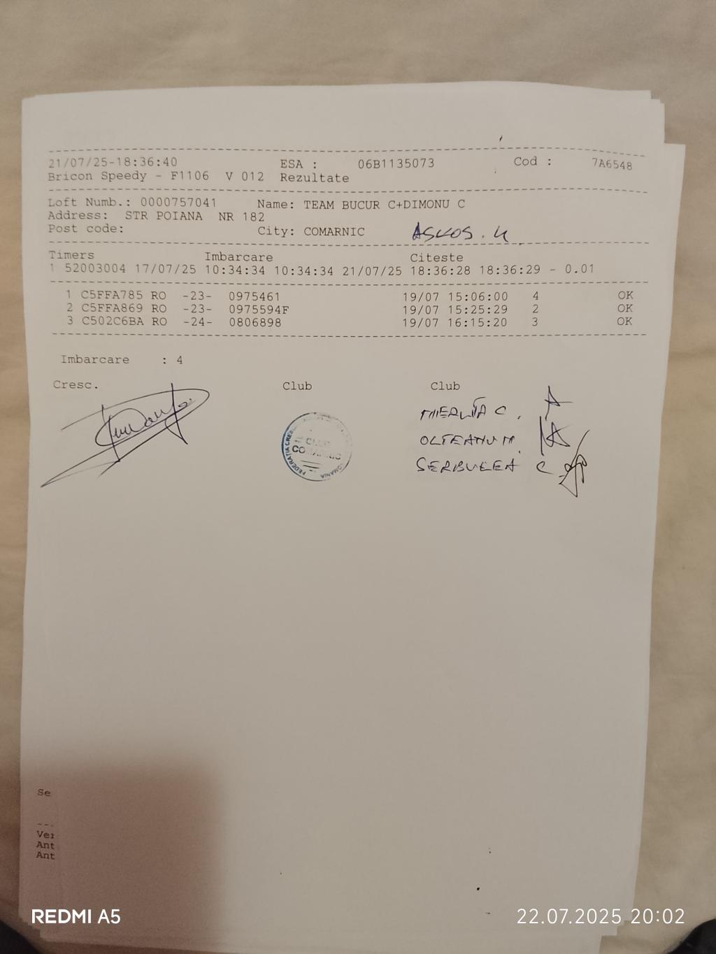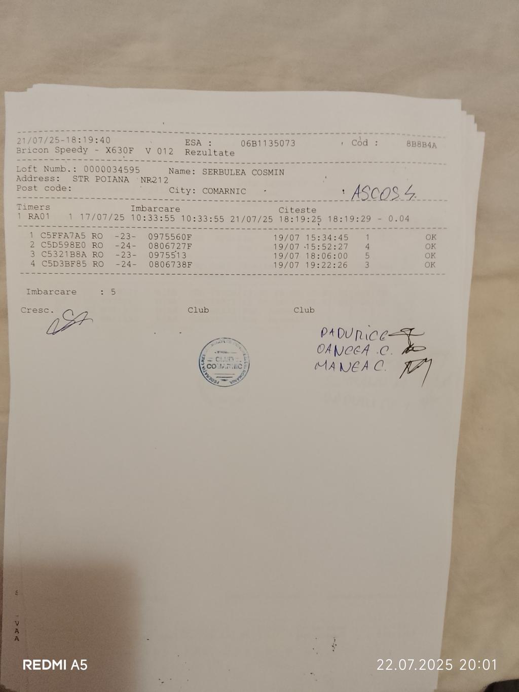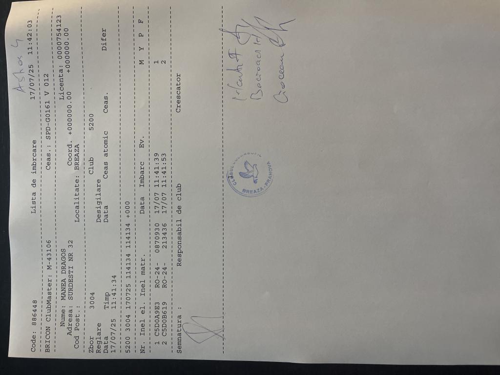 | 19 | Neacsu Catalin | PH7097 | TOP | Berca |