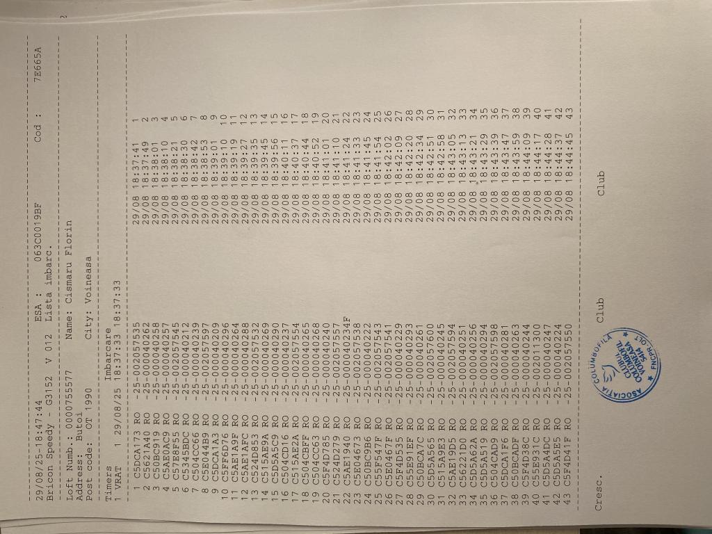 SIGILARE: [Centrul Slatina. Etapa Vrata 2. Sigilare masina] [Desigilare Ma?in? venit? de la Slatina la etapa nr.2 Vrata ] [Sigilare Ma?in? Centru Bal? la etapa nr. 2 Vrata ce pleac? la Voineasa ] [Centru caracal vartsa nr 2 puii sigilare masina] [Sigilare masina club Voineasa ] [Desigilare masina club Voineasa ] |