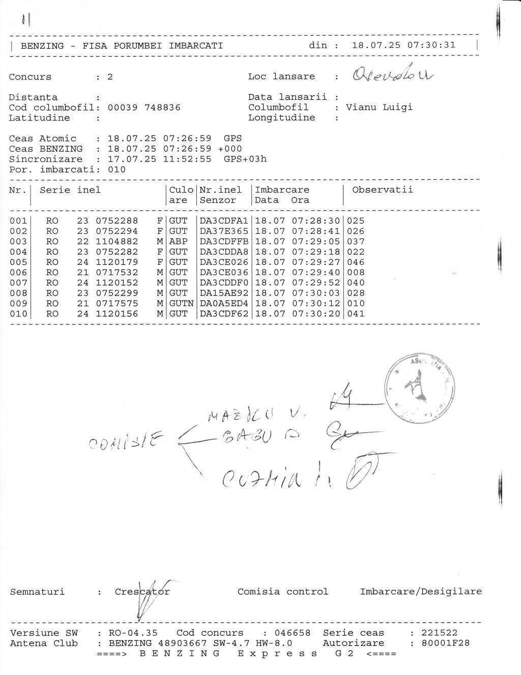 | 27 | Mario Pigeons | BR408 | BEN | Braila | [IMB P0] | [DES P0] |