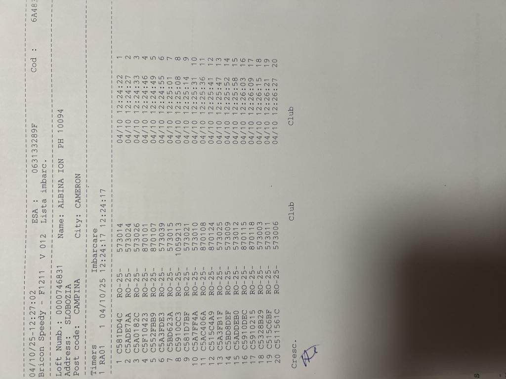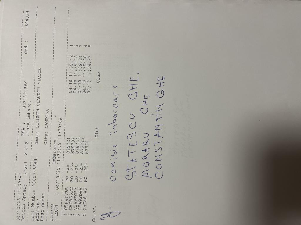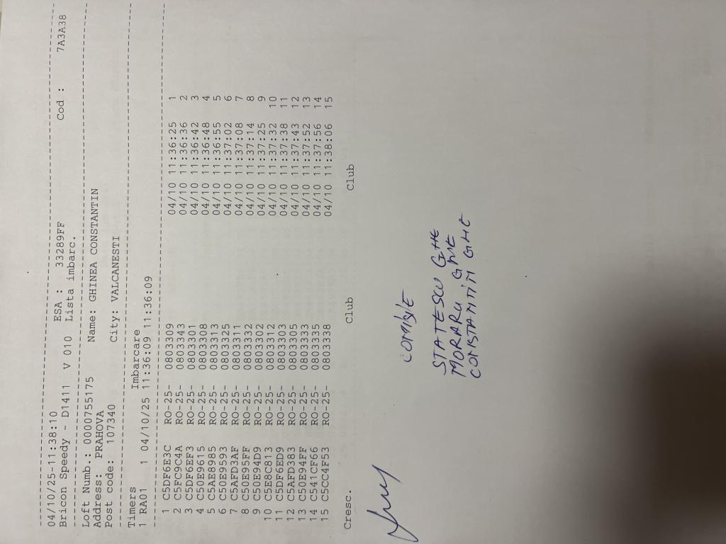 | 125 | Sandu Pigeons Team | PH10611 | BRI | Plopeni |