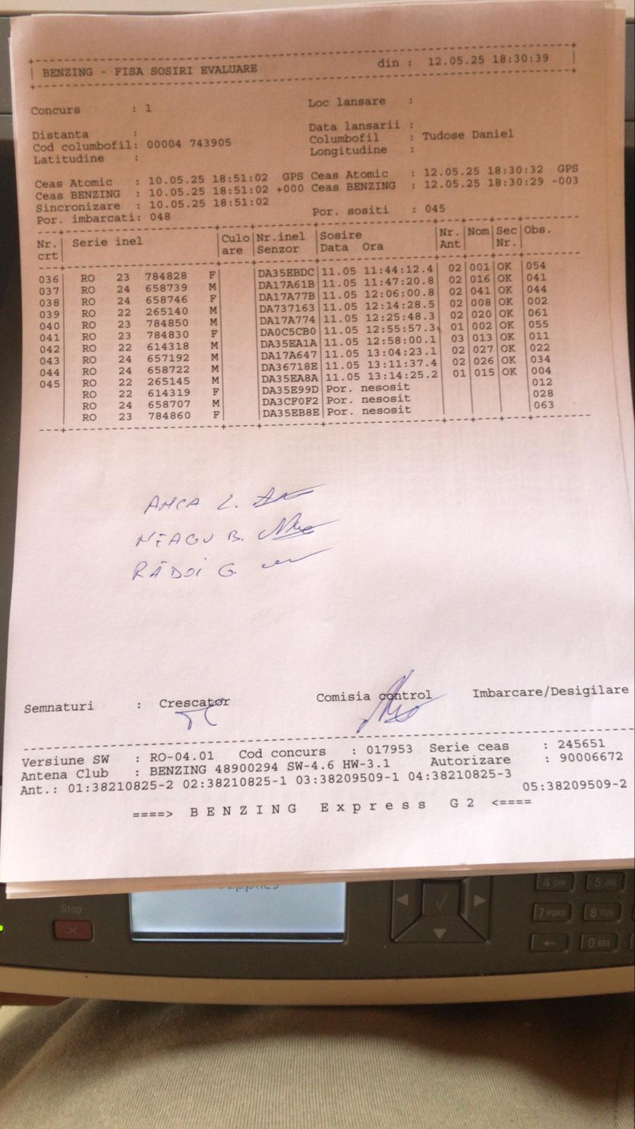 | 103 | Negutu Alexandru Silviu | DB823 | TOP | Top Pigeon Lunguletu |