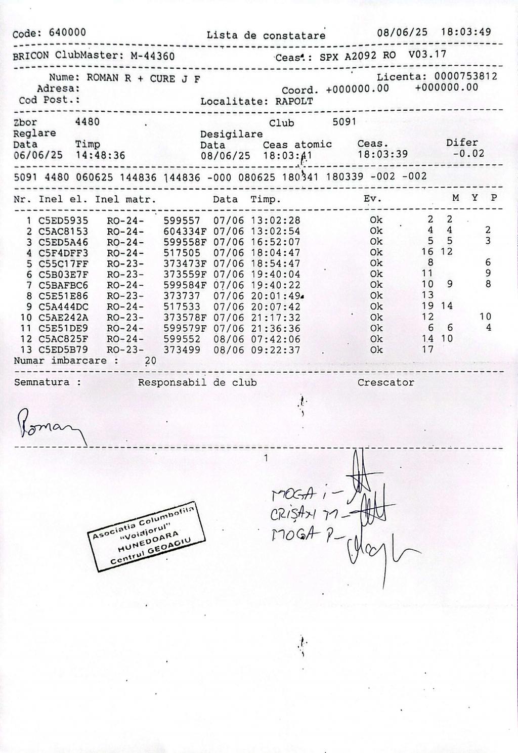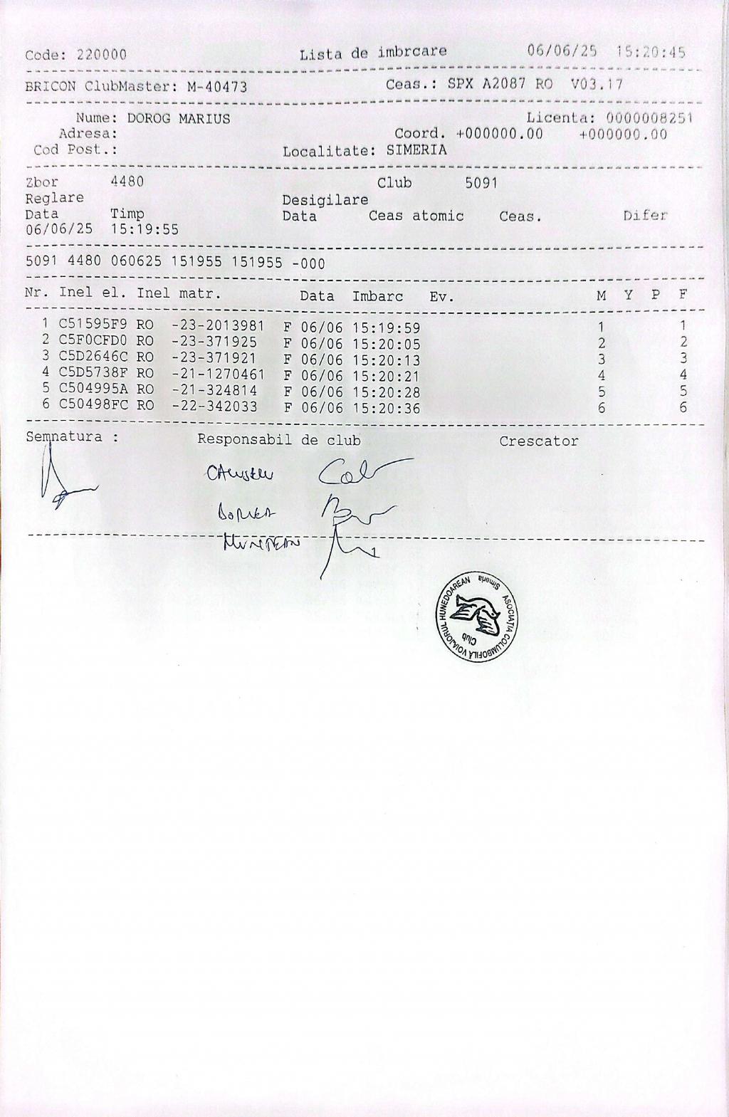 | 6 | Florea Bogdan | HD1393 | TOP | Simeria |