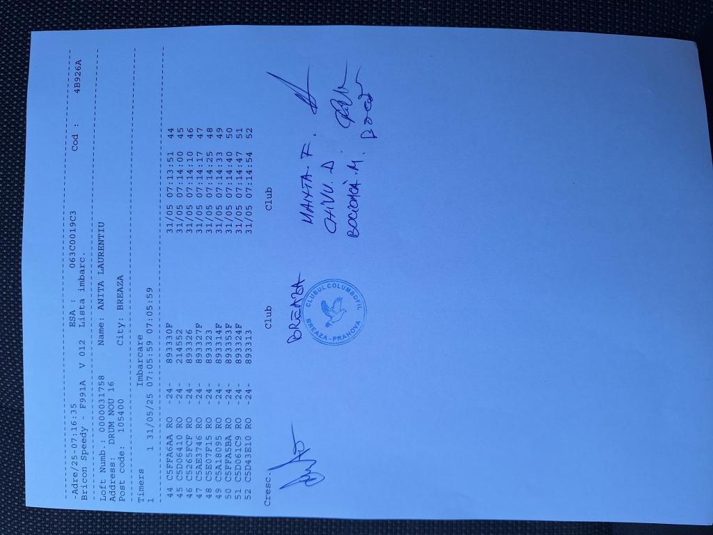 | 55 | Cioceanu Gheorghe | PH10300 | BRI | Breaza | [IMB P0] | [DES P0] |