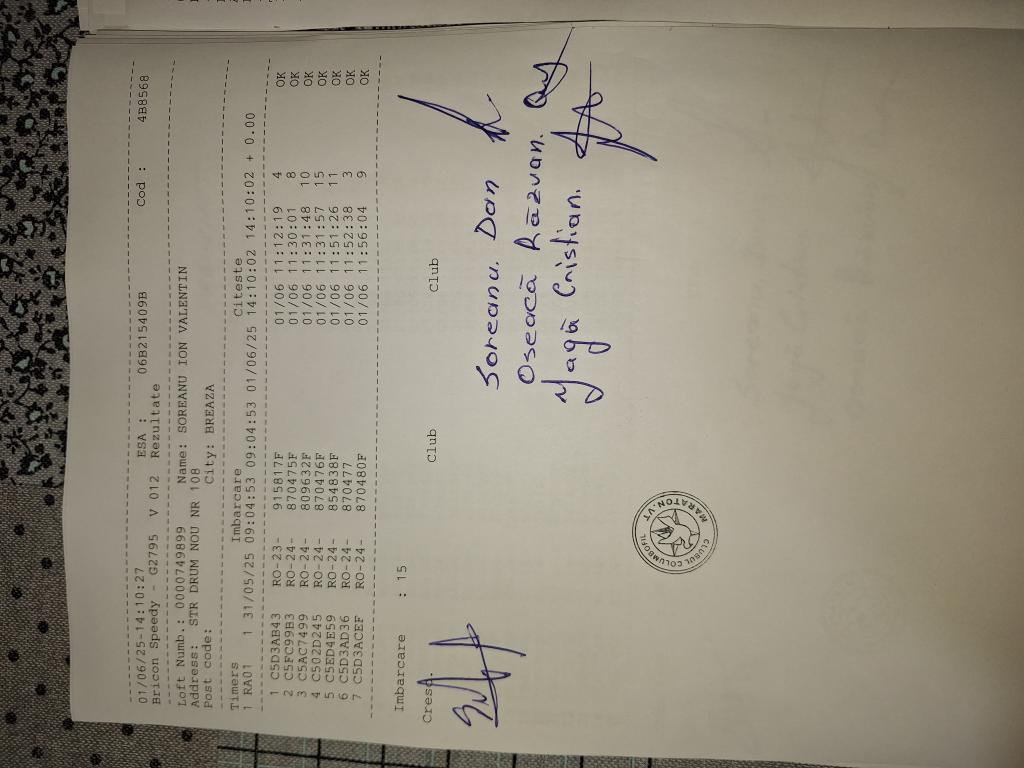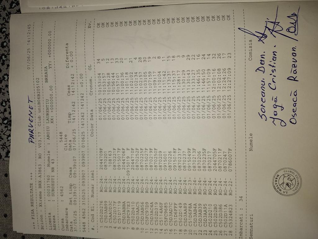 | 328 | Ghinoiu Raul& Darius | PH124567 | TOP | Fieni |