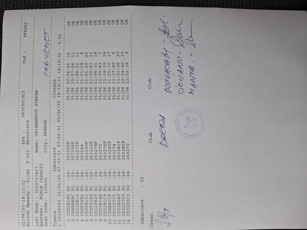 | 353 | Florea Gheorghe | PH124093 | BRI | Valea Tarsei- Breaza | [IMB P0] | [DES P0] |