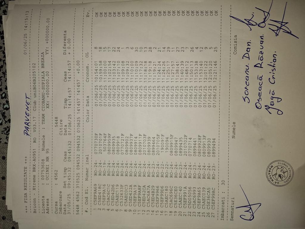 | 366 | Oseaca Razvan | PH56059 | BRI | Valea Tarsei- Breaza | [IMB P0] | [DES P0] |