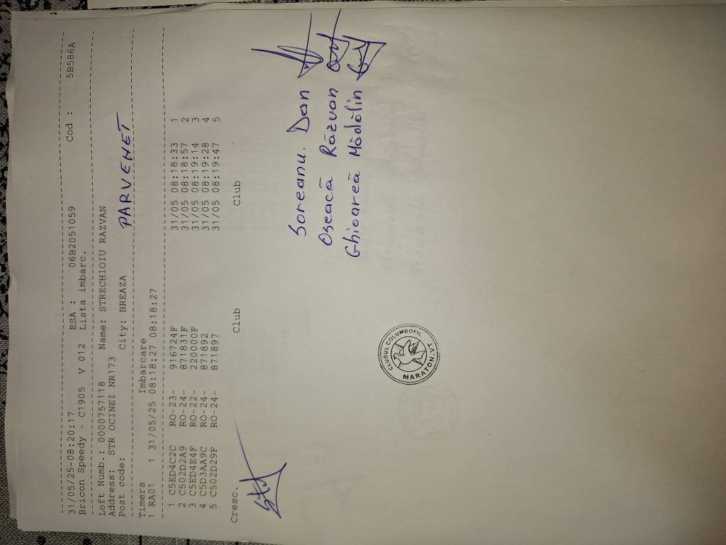 | 287 | Boncu Florin | PH124529 | BRI | Expres Adunati | [IMB P0] | [DES P0] |