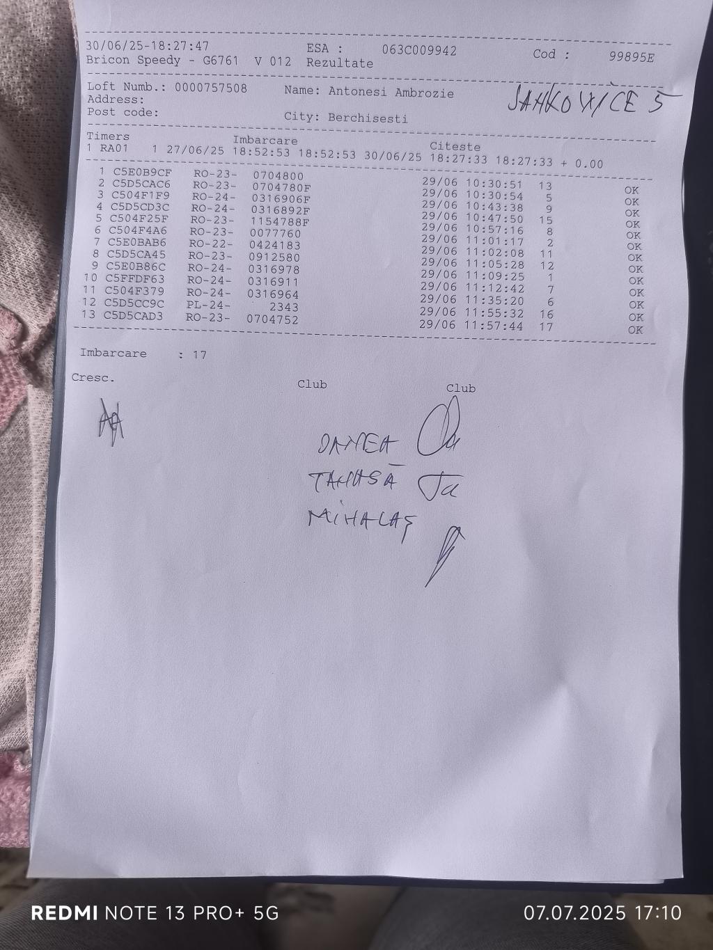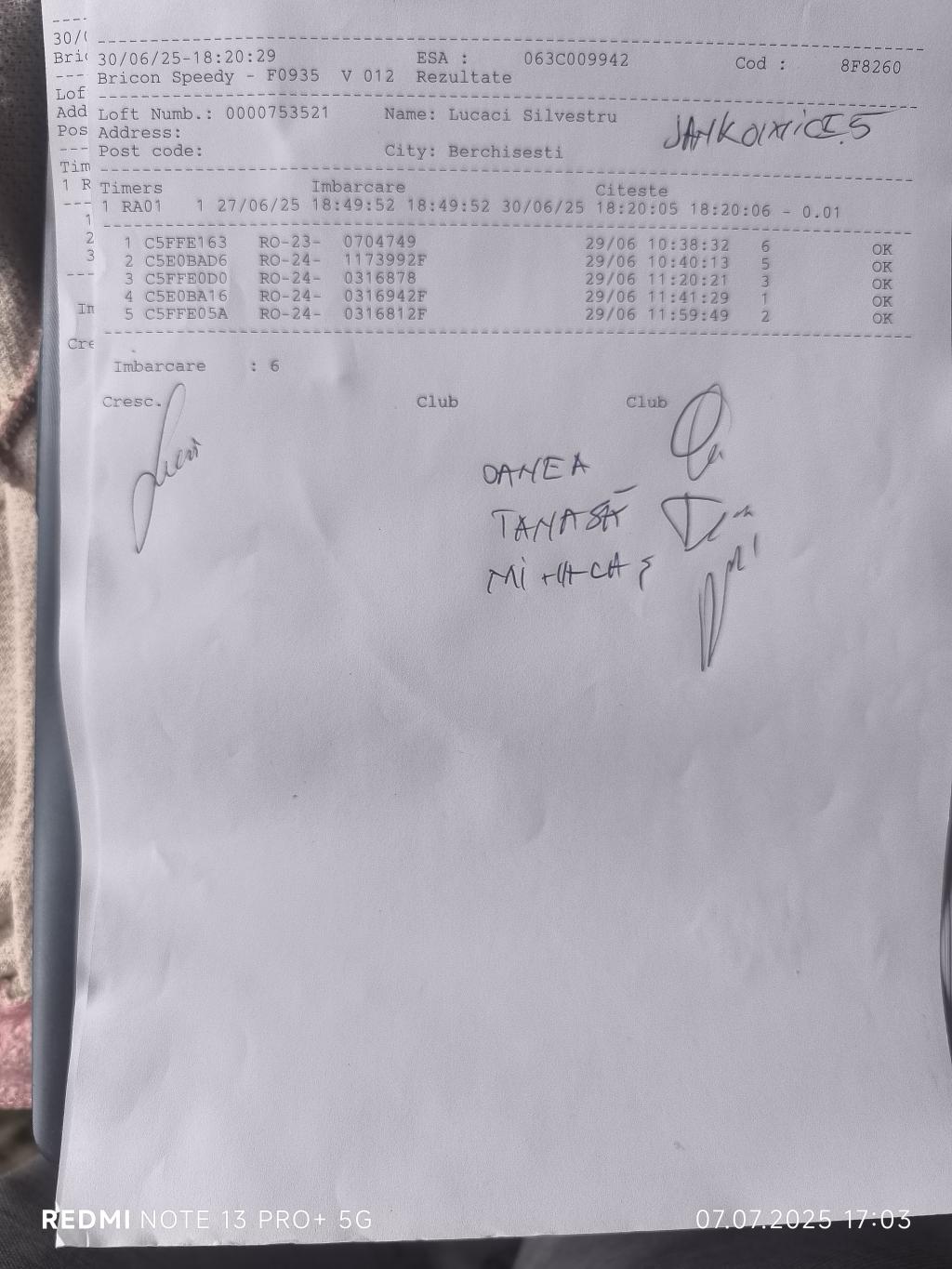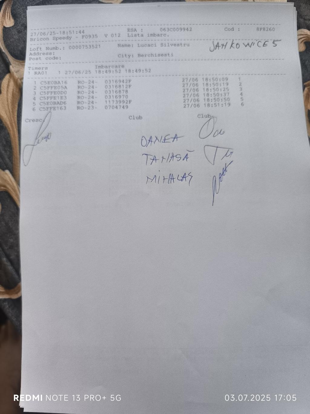 106 | Juravlea Nicu | SV1841 | BEN | Phoenix Bucovina |