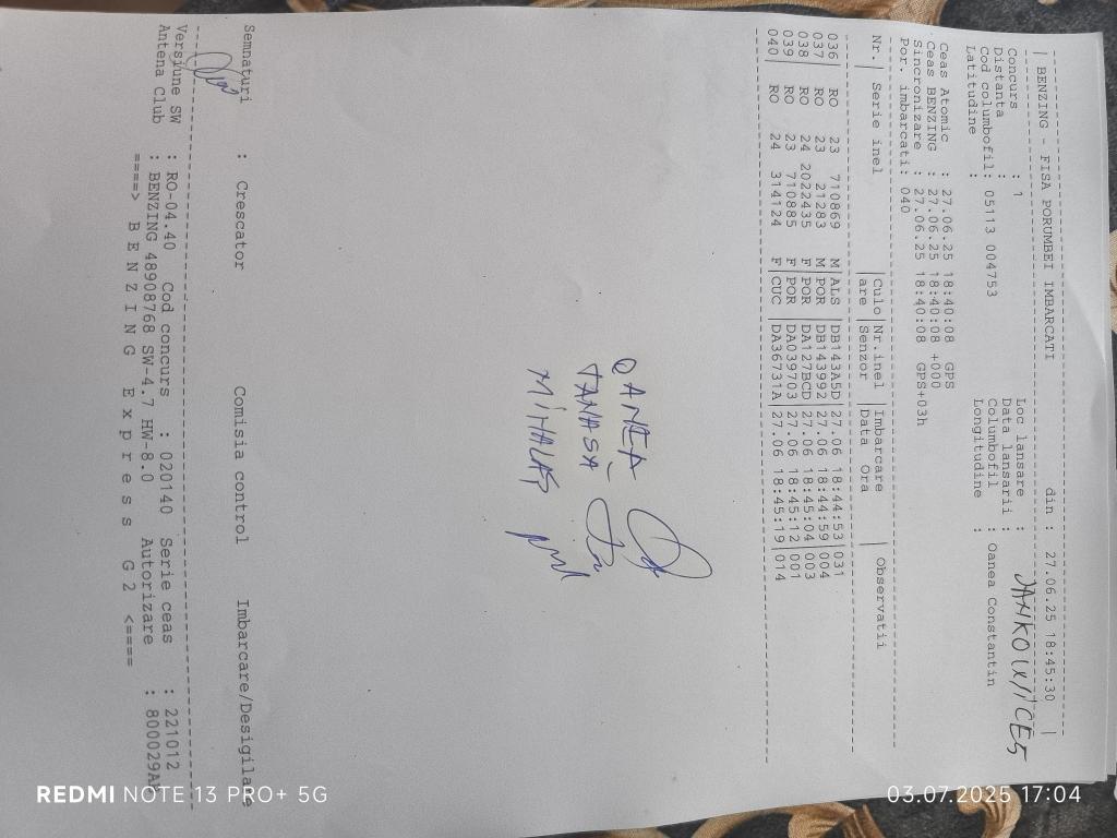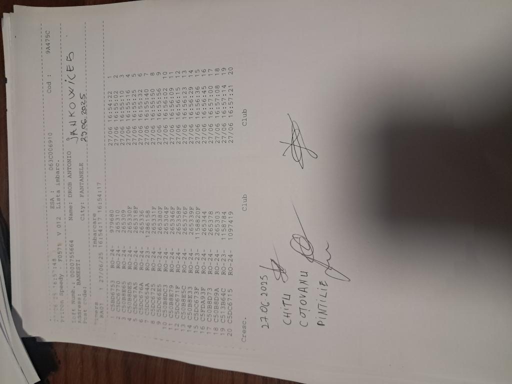 SIGILARE: [Sigilii c?tre centru Phoenix Suceava ] [sosire masina de la centrul Burdujeni] RECLEMARE: [sigilare masina cu destinatia Gura Humorului] SIGILARE: [sosire masina] [plecare masina] |