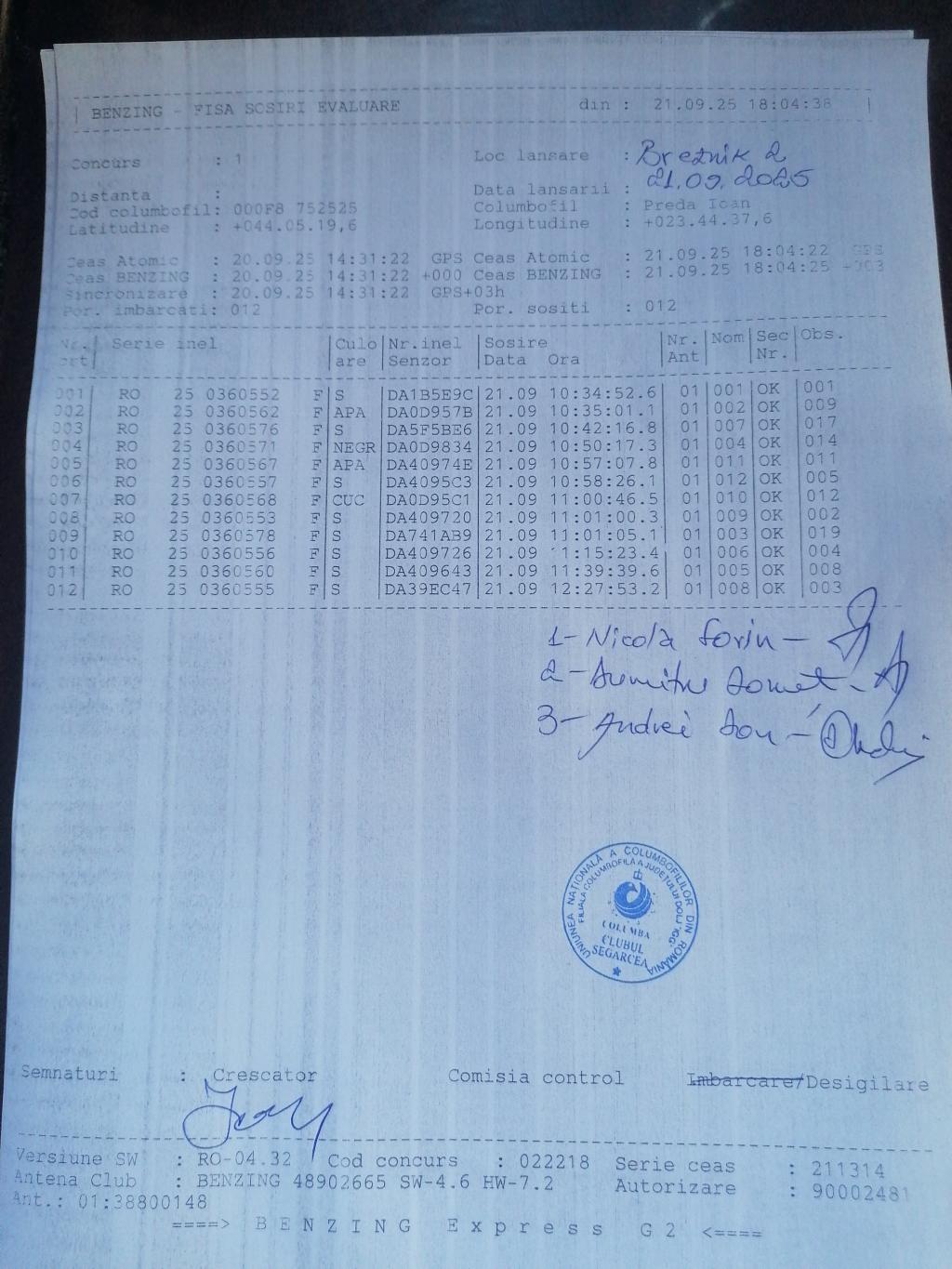 SIGILARE: [Sigilare] [Desigilare club Gold Pigeons Concurs Breznik 2] [Sigilare Club Gold Pigeons Concurs Breznik 2] RECLEMARE: [Îmbarcare centru Gold Pigeons Craiova Cresc?tor Oprescu Iustin Concurs Breznik 2 21.09.2025] SIGILARE: [Desigilare club Bailesti] [Sigilare club Bailesti] [Desigilare club Dabuleni] [Imbarcare Fratii Scortar ] [Imbarcare Dirman Viorel ] [Sigilare Club Dabuleni] [Desigilare club Segarcea ] [Sigilare Club Segarcea ] |