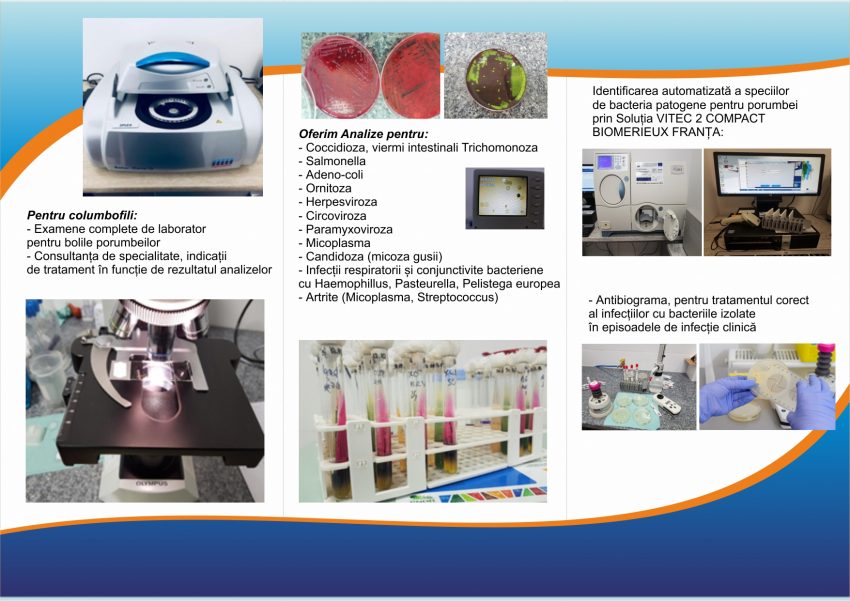 Sigur că multe dintre bolile porumbeilor sunt destul de dificil de diagnosticat, însă laboratorul medicului veterinar Sonia Caragea este suficient de dotat cu aparatură performantă pentru a identifica aproape toate bolile care apar la porumbei. Astfel, pot fi făcute analize pentru a depista Salmonella, Adenovirusul, Herpes virusul sau virușii care atacă sistemul respirator al porumbeilor. Mai mult decât atât, datorită aparaturii foarte performante, perioada de analiză și detecție a germenilor foarte patogeni este foarte mică, ceea ce înseamnă un real câștig pentru că știm cât de repede avansează bolilea la porumbei în cazul în care aceștia prezintă deja simptome. „Prin tehnologia performantă de nivel european pe care o deținem, timpul necesar detecției germenilor patogeni de tipul Salmonella, de exemplu, este redus la doar 28 de ore, față de la 5-7 zile cât ar dura această analiză prin metodă clasică. De asemenea, deținem un sistem automat de detecție a unei game foarte largi de microorganisme patogene de la porumbei (bacterii și fungi patogeni), prin care putem realiza în același pas și antibiograme sau antifungigrame standardizate CMI, adică foarte precise, într-un timp scurt (două zile), în timp ce prin metodele clasice sunt necesare 5-6 zile! Ca și noutate, suntem singurul laborator din România care poate să facă analize prin tehnici de biologie moleculară (RT-PCR) pentru bolile non-bacteriene ale porumbeilor: Adenovirusul columbar, Herpes virusul columbar, Circovirusul columbar, Micoplasmoza și Clamidioza porumbeilor. Aceste analize prin tehnică PCR se bazează pe identificarea genetică a agenților infecțioși se pot realiza într-o singură zi de la primirea probelor”, a precizat Dr. Sonia Caragea.